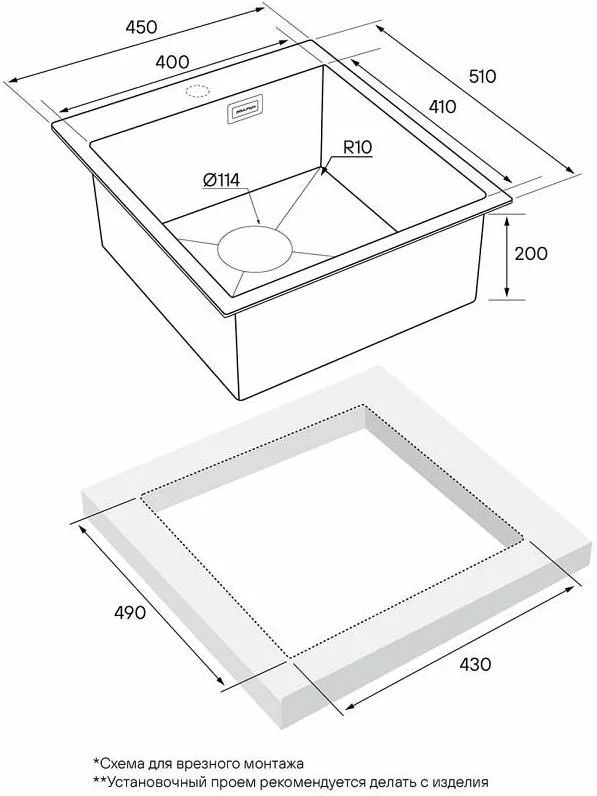 Нержавеющая брашированная мойка для кухни Paulmark. PVD. Нержавеющая сталь марки 304.