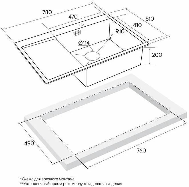 Нержавеющая брашированная мойка для кухни Paulmark.