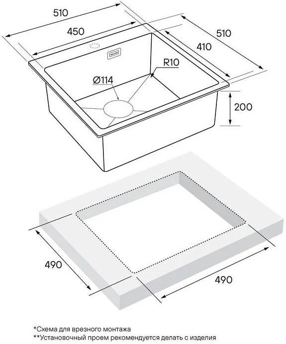 Нержавеющая брашированная мойка для кухни Paulmark.