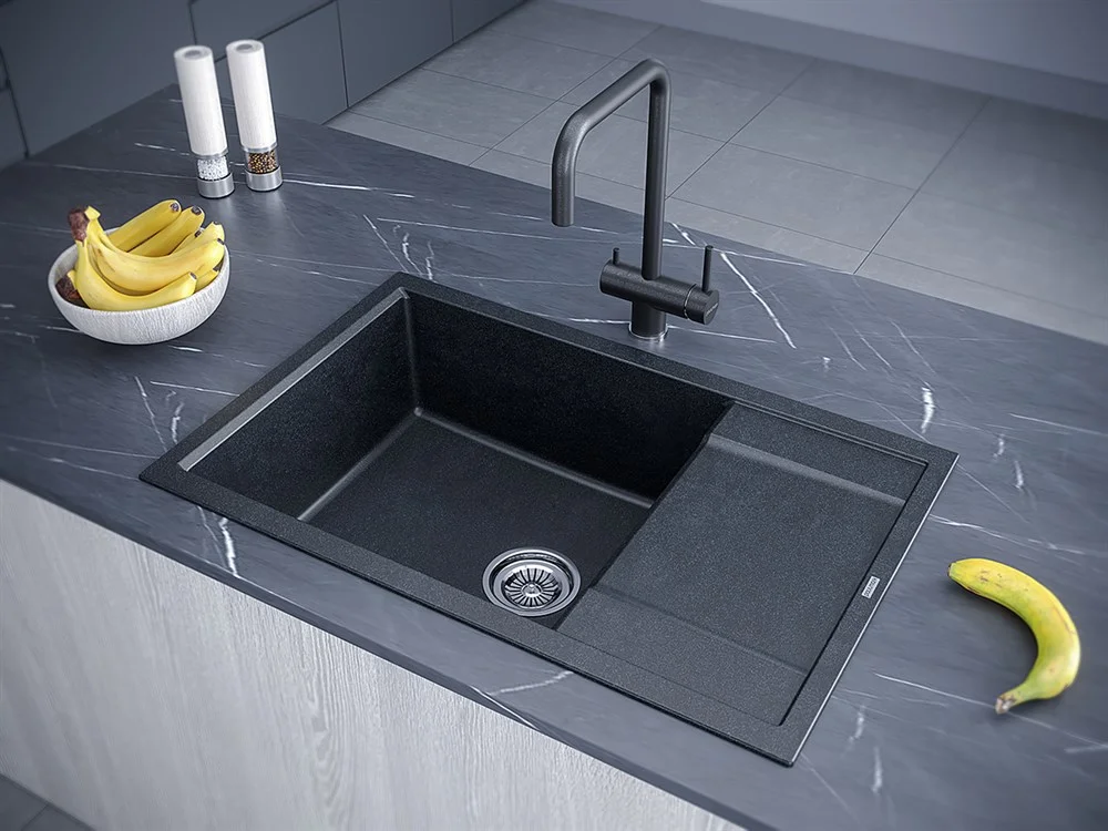 Кварцевая мойка для кухни Paulmark. Высокая прочность, устойчивость к царапинам, гладкая поверхность без пор, долговечность, безопасность и экологичность.