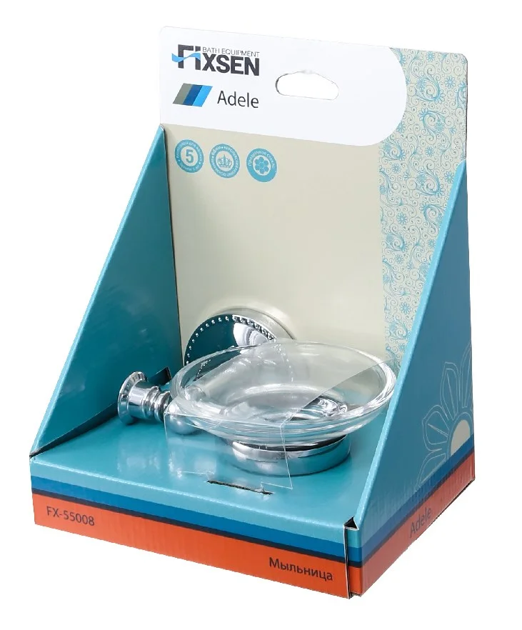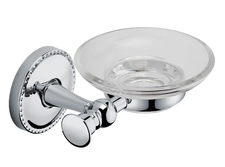 Стеклянная мыльница с настенным держателем. Дизайн в ретро стиле, материалы - хромированный металл, прозрачное стекло.