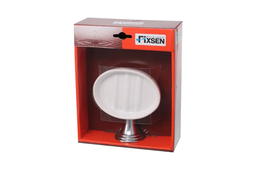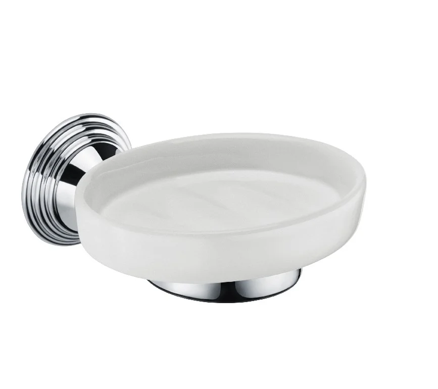 Настенная мыльница. Материалы - хромированная латунь, белая керамика.