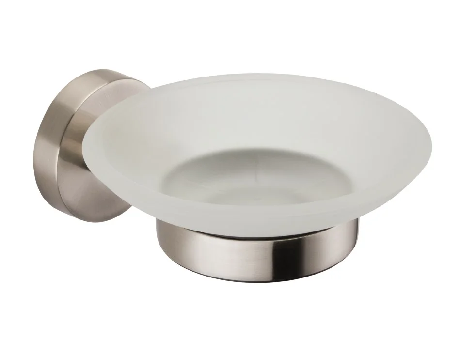 Круглая чаша мыльницы изготовлена из матового белого стекла.
