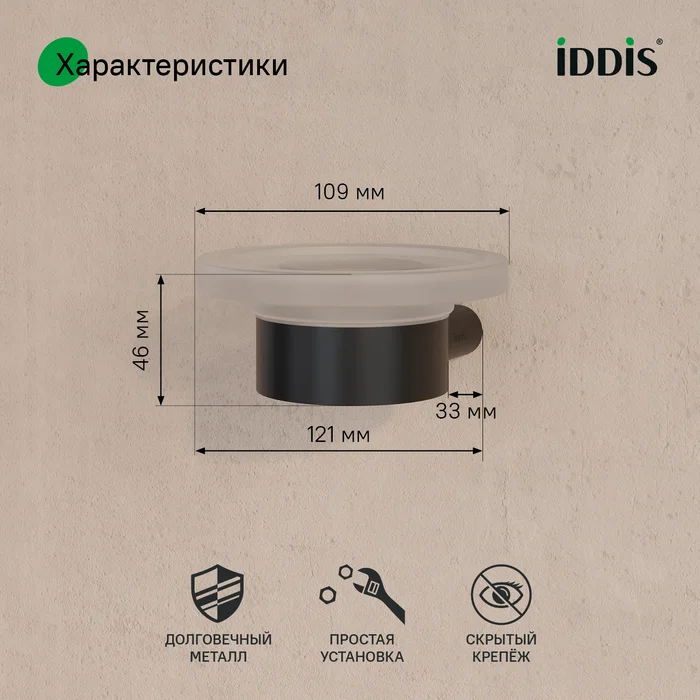 Мыльница удобна в установке, монтаж не требует профессиональных навыков. Крепежные элементы скрыты корпусом, что обеспечивает привлекательный и аккуратный внешний вид.