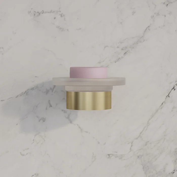 Стильная мыльница Petite из матового белого стекла в держателе матового золотого цвета.