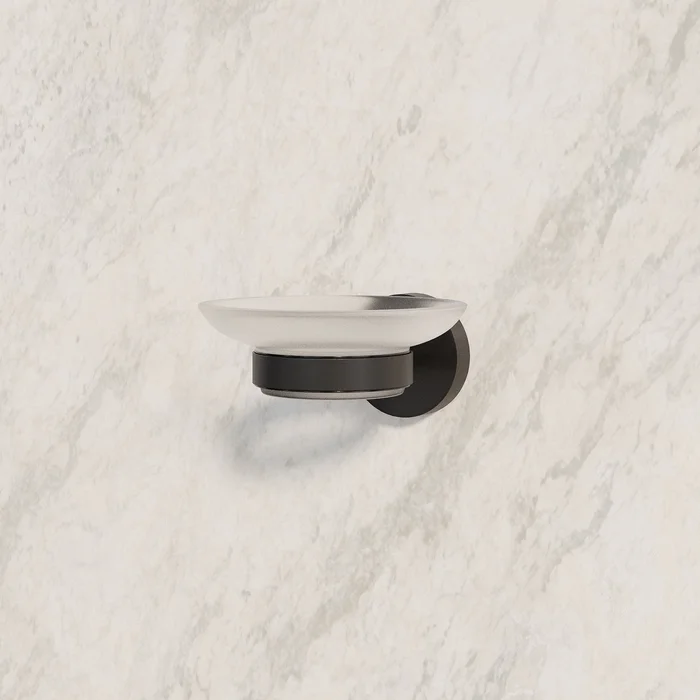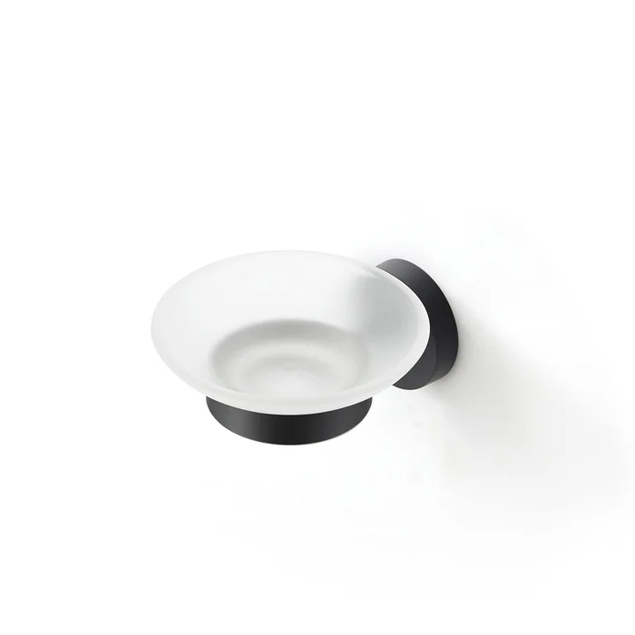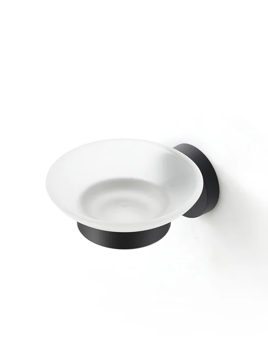 Мыльница Sena из матового белого стекла в держателе черного матового цвета – доступное функциональное решение для современной ванной комнаты.