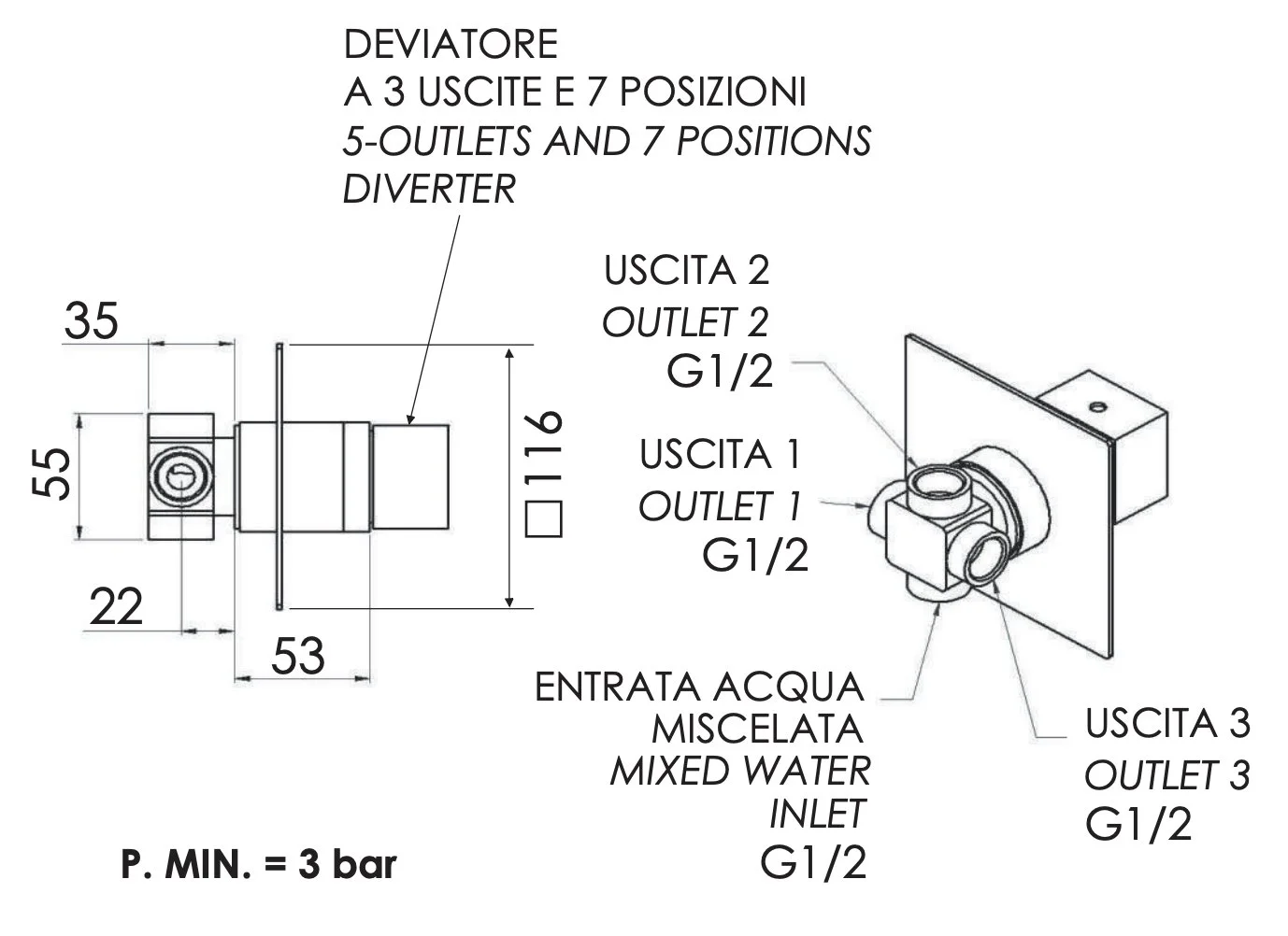 Переключатель потоков Remer Qubika Q93DEV7 на 3 выхода и 7 положений