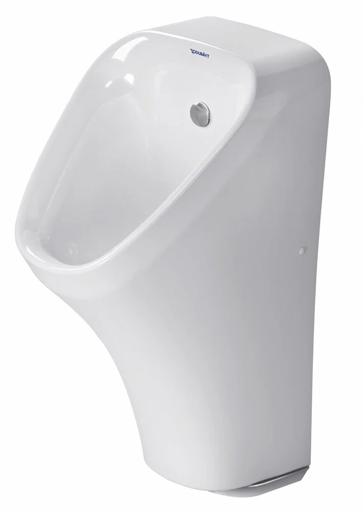 электронный писсуар с питанием от батареек, без смывного края, подача воды сзади, сток горизонтальный Ø 50 мм, Полное управление, смывная форсунка, гарнитура подачи воды, гидрозатвор, а также включая крепление