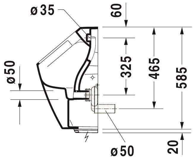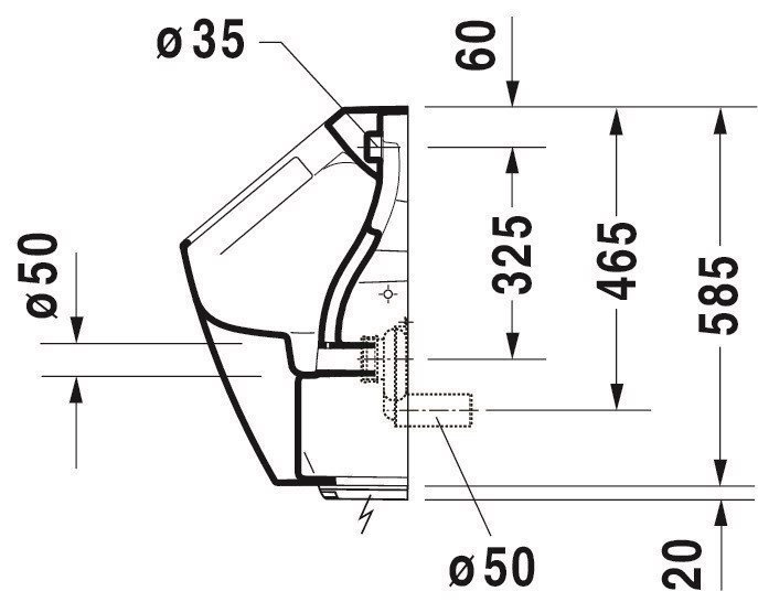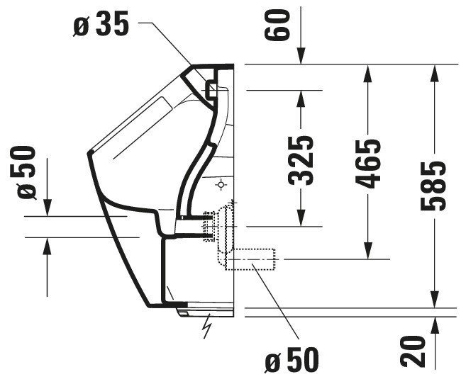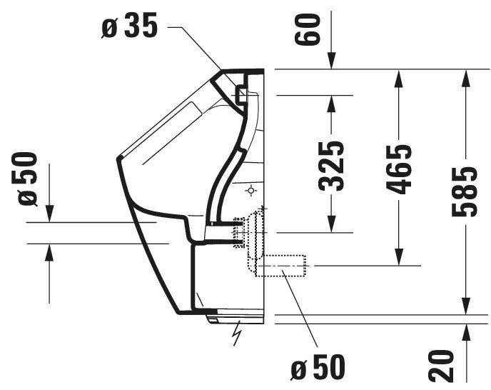 Купить Duravit ME by Starck Писсуар Rimless электр. писсуар с пит. от сети, без смыв. края, подача воды сзади, с вытяж., сток гориз.с HygieneGlaze без мушки 2809312093 в Москве