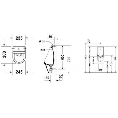 модель без "мушки", вкл. смывную форсунку, вентиль со стрежнем и с керамической крышкой выпуска Ø 72 мм, сифон-стакан Ø 32 мм с креплением 0826250000