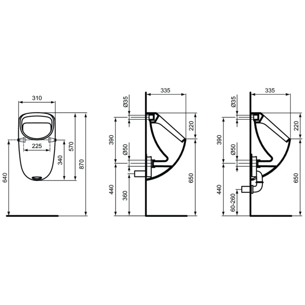 CONNECT Писсуар, задняя подводка, горизонтальный или вертикальный выпуск (отверстие внизу), смыв 0,3 - 0,7 л/сек.,мин.смыв 2л, с крепежом TT0257919