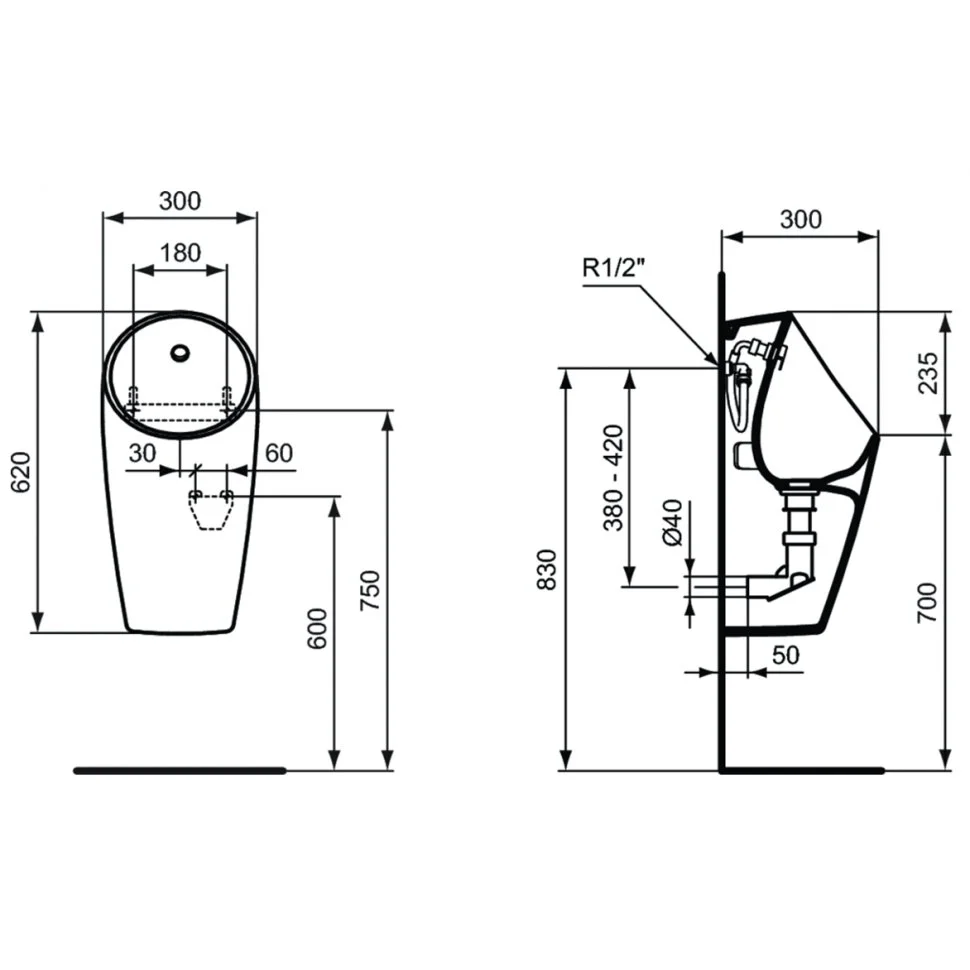 Писсуар Ideal Standard SPHERO MAXI Smart Hybrid E208501 со встроенным датчиком, задняя подводка
