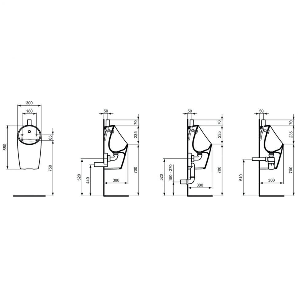 Писсуар Ideal Standard SPHERO MIDI E189501 со стандартным смывом, верхняя подводка -->