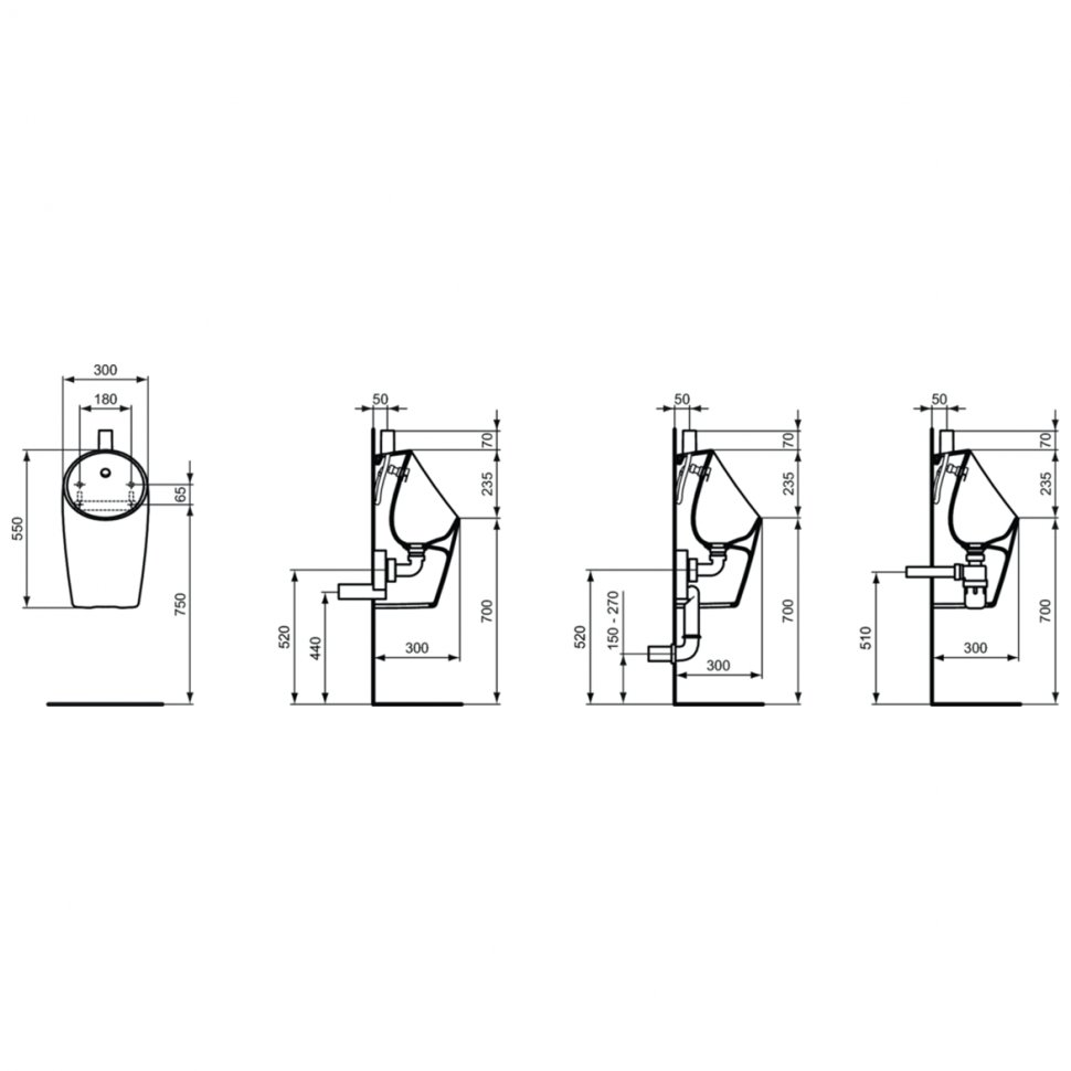 Писсуар Ideal Standard SPHERO MIDI E189501 со стандартным смывом, верхняя подводка