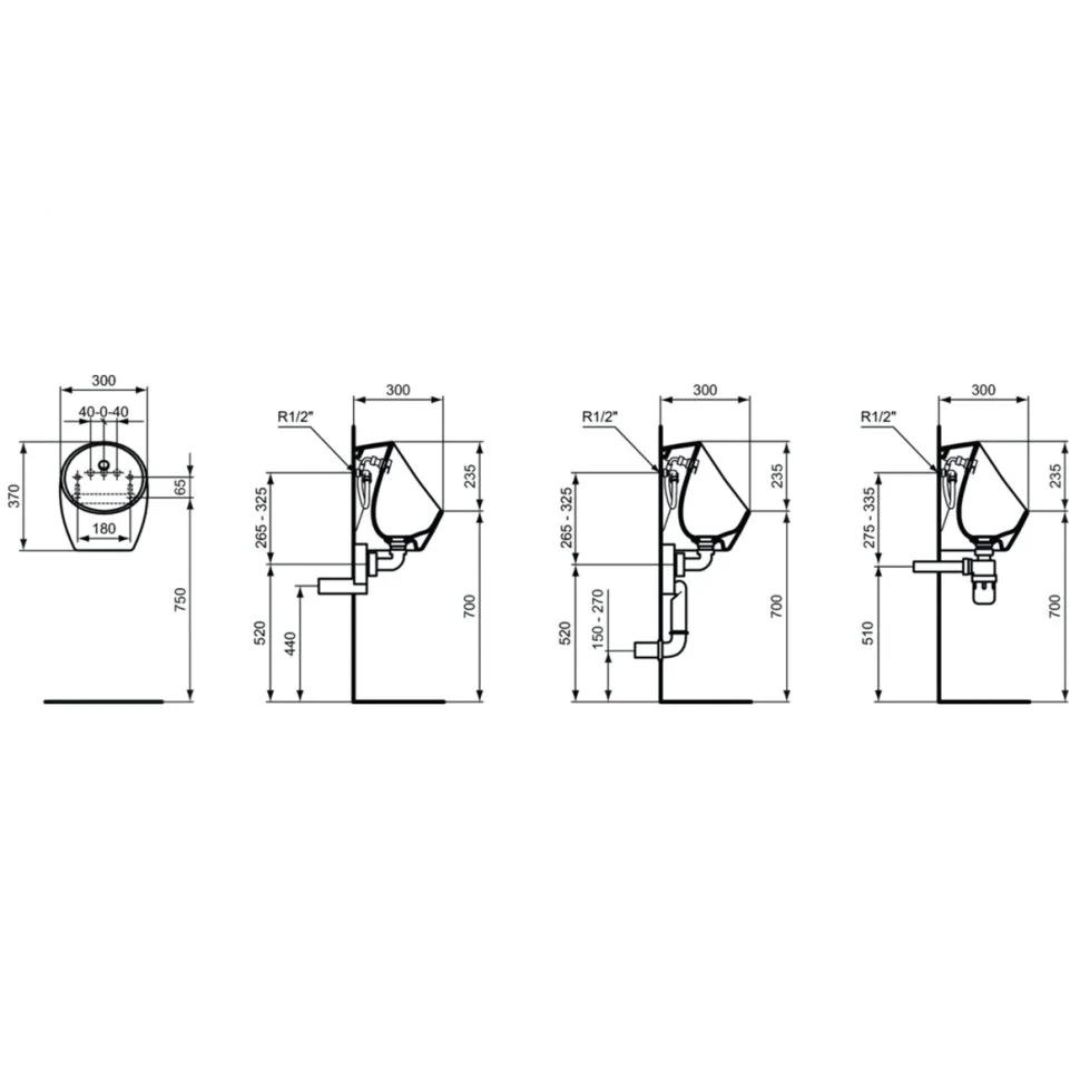 Писсуар Ideal Standard SPHERO MINI E182801 со стандартным смывом, задняя подводка, с внешним сифоном