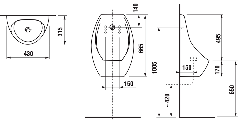 Писсуар Jika Domino без сенсорного датчика 8.4110.1.000.000.1
