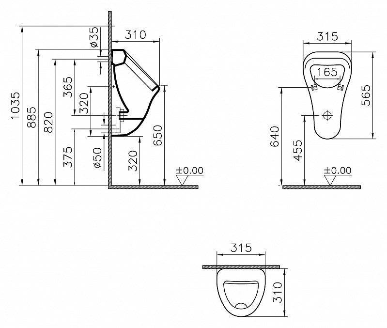 Писсуар Vitra Arkitekt 6201B003-0199 подвесной с внутренним подводом воды белый -->