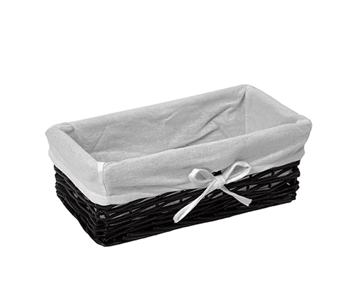Назначение: Плетеная корзина. Материал: Прутья ивы, текстиль. Покрытие: Водоотталкивающее покрытие. Описание: Размер: 42 х 25 х 14 см* Съемный чехол можно стирать в машинке при температуре не выше 60 градусов.