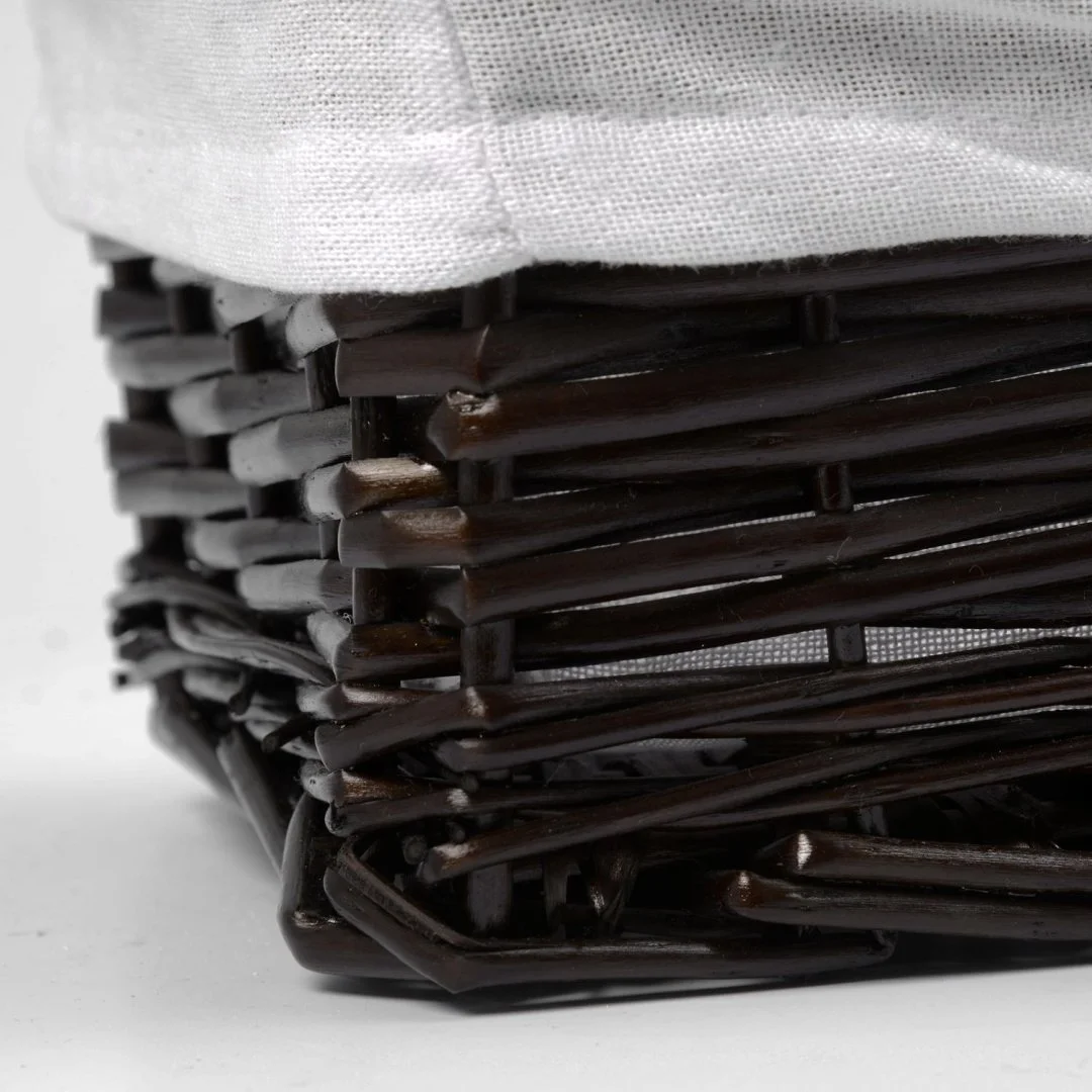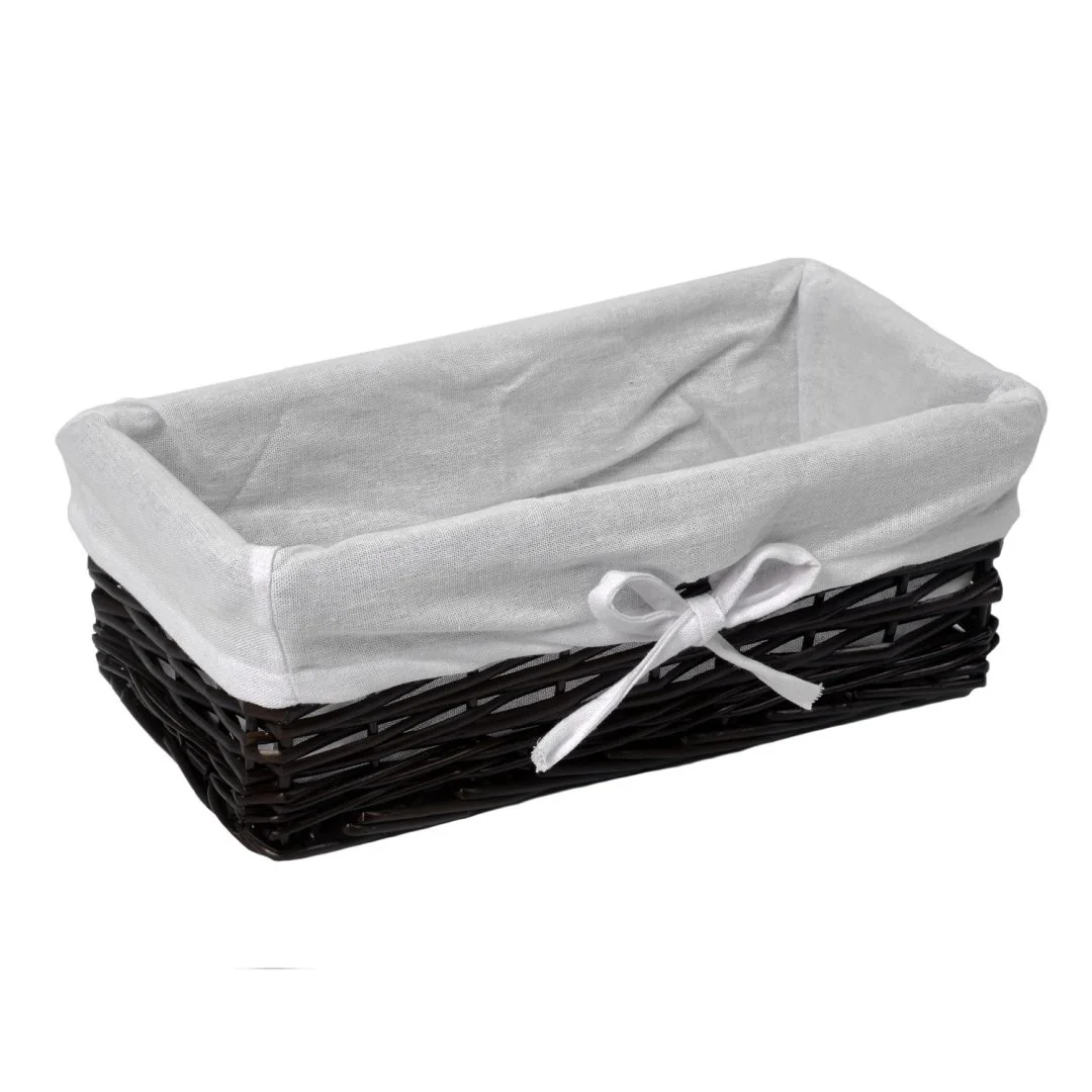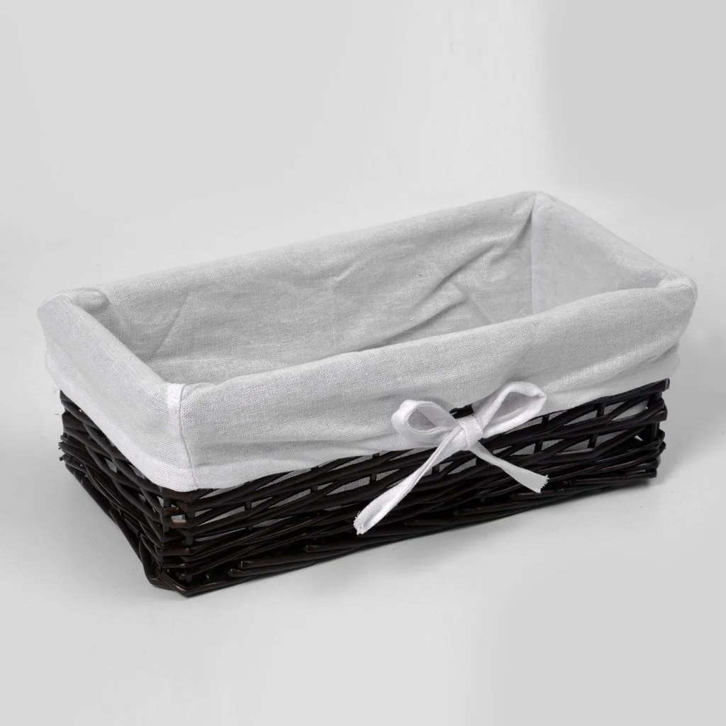 Назначение: Плетеная корзина. Материал: Прутья ивы, текстиль. Покрытие: Водоотталкивающее покрытие. Описание: Размер: 37 х 19 х 12 см* Съемный чехол можно стирать в машинке при температуре не выше 60 градусов.