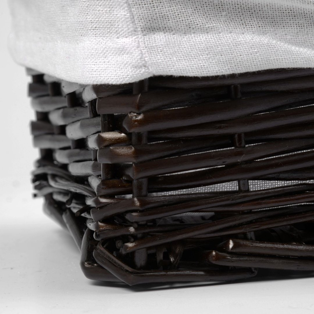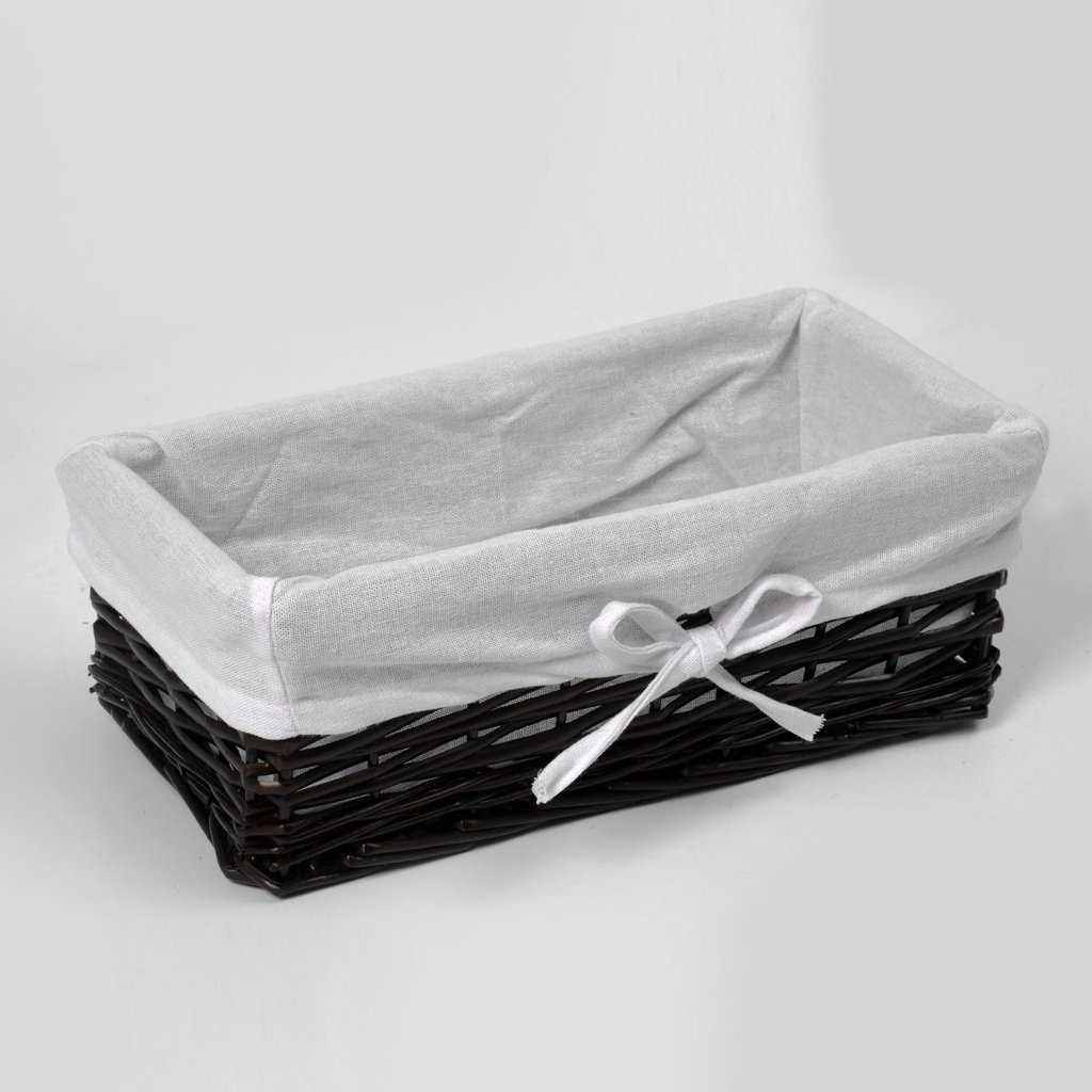 Назначение: Плетеная корзина. Материал: Прутья ивы, текстиль. Покрытие: Водоотталкивающее покрытие. Описание: Размер: 31 х 15 х 10 см* Съемный чехол можно стирать в машинке при температуре не выше 60 градусов.