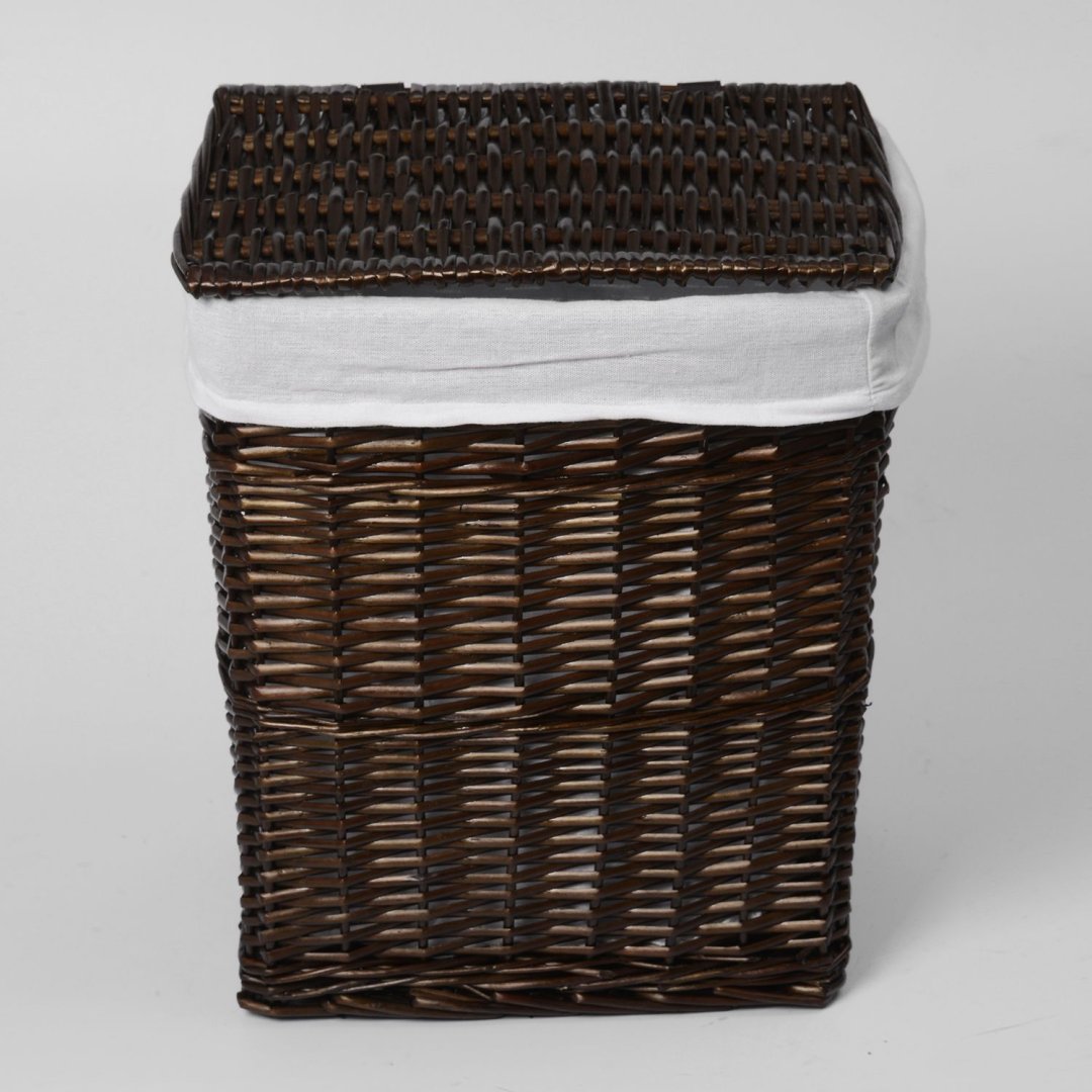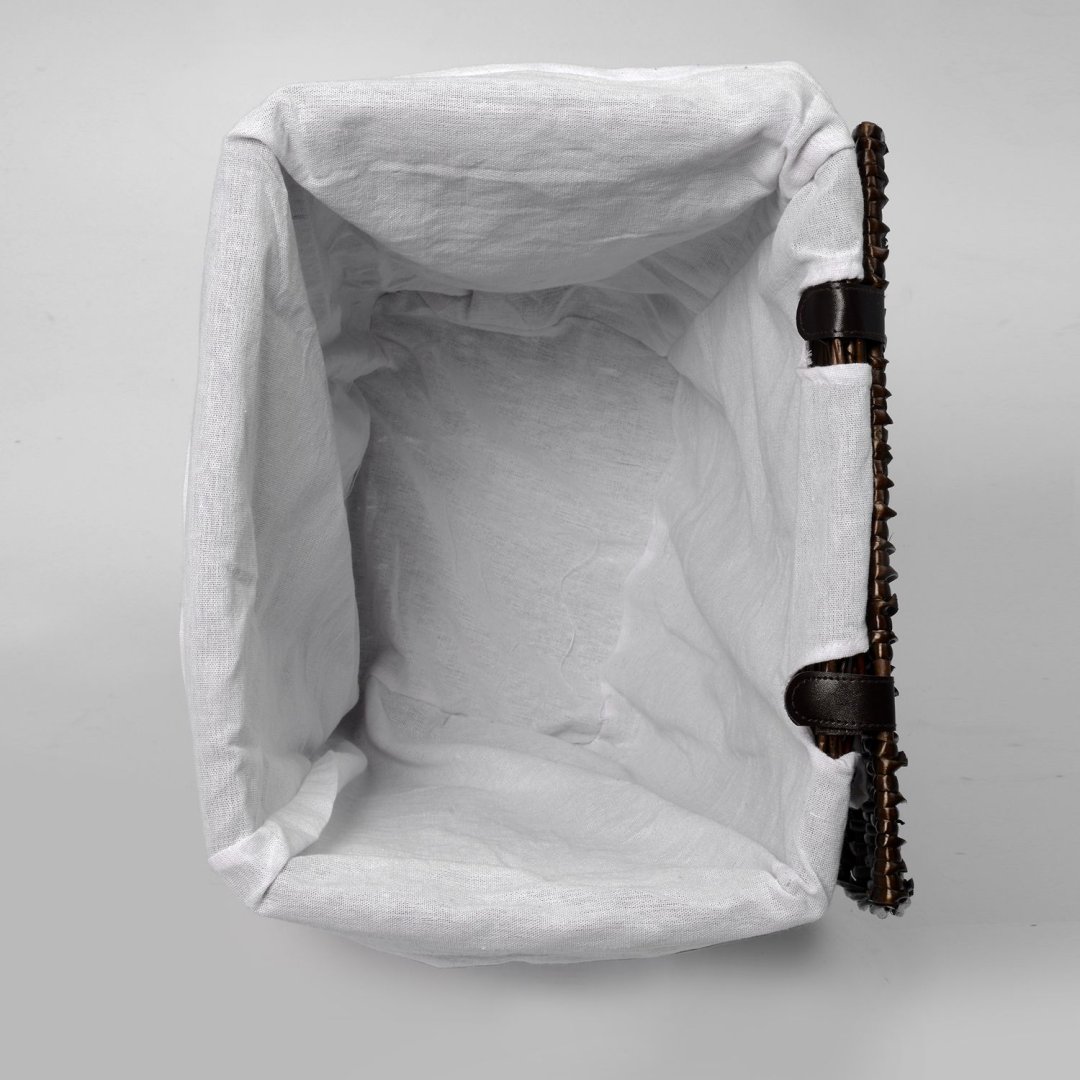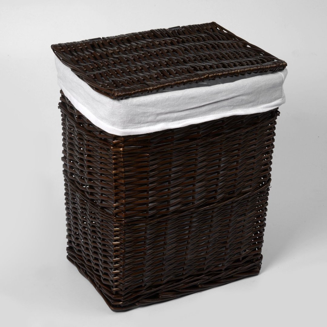 Назначение: Плетеная корзина. Материал: Прутья ивы, текстиль. Покрытие: Водоотталкивающее покрытие. Описание: Размер: 47 х 35 х 55 см* Съемный чехол можно стирать в машинке при температуре не выше 60 градусов.
