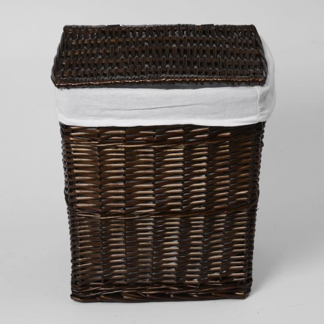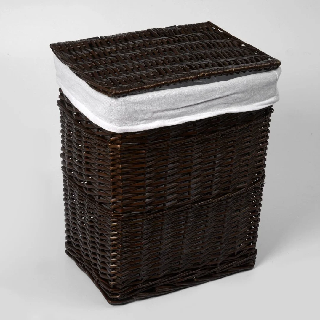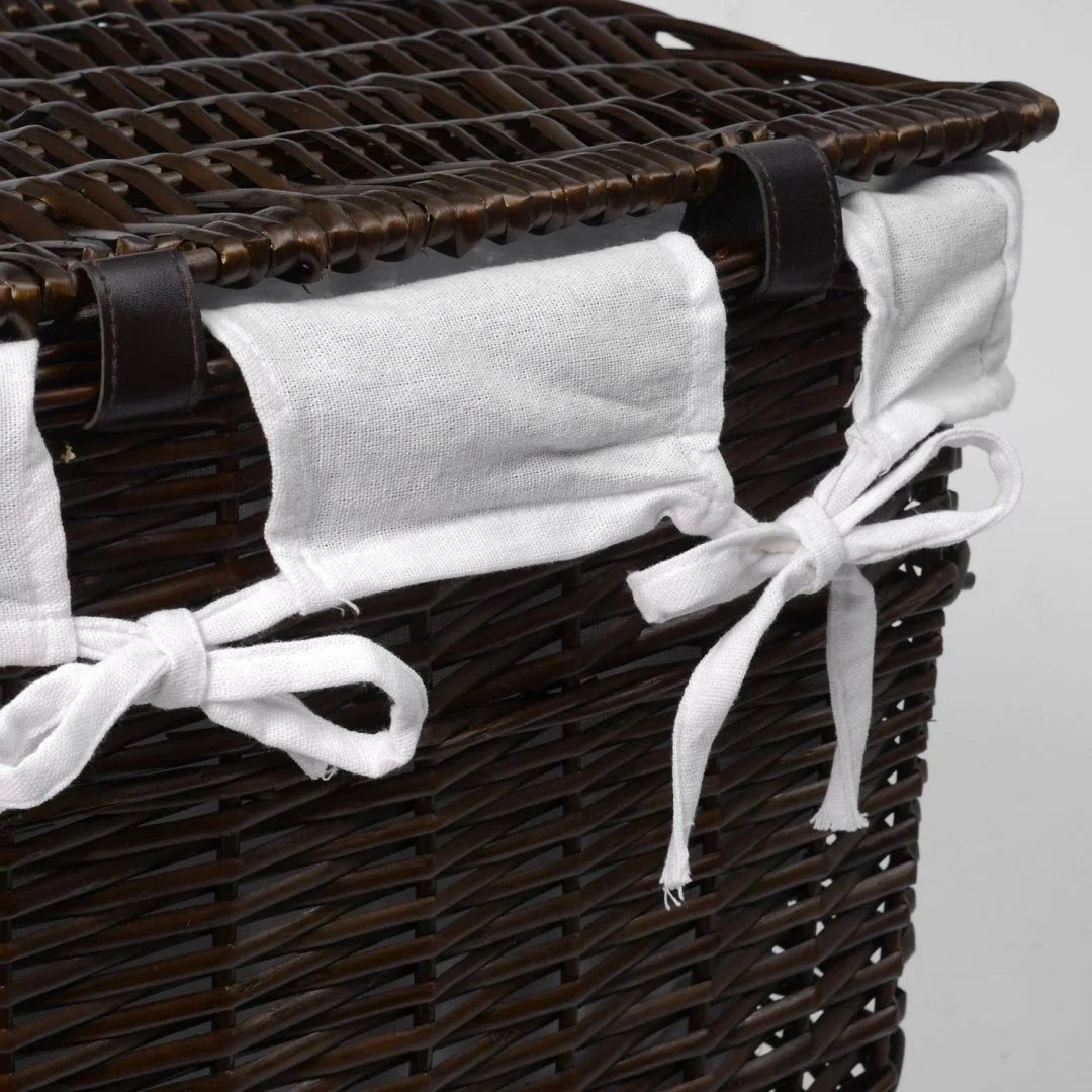 Назначение: Плетеная корзина. Материал: Прутья ивы, текстиль. Покрытие: Водоотталкивающее покрытие. Описание: Размер: 41 х 30 х 48 см* Съемный чехол можно стирать в машинке при температуре не выше 60 градусов.