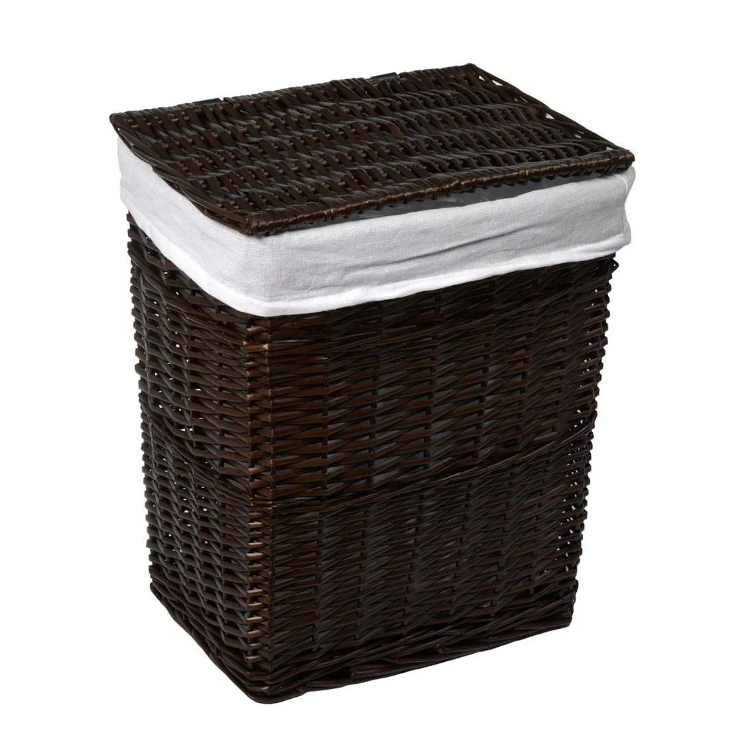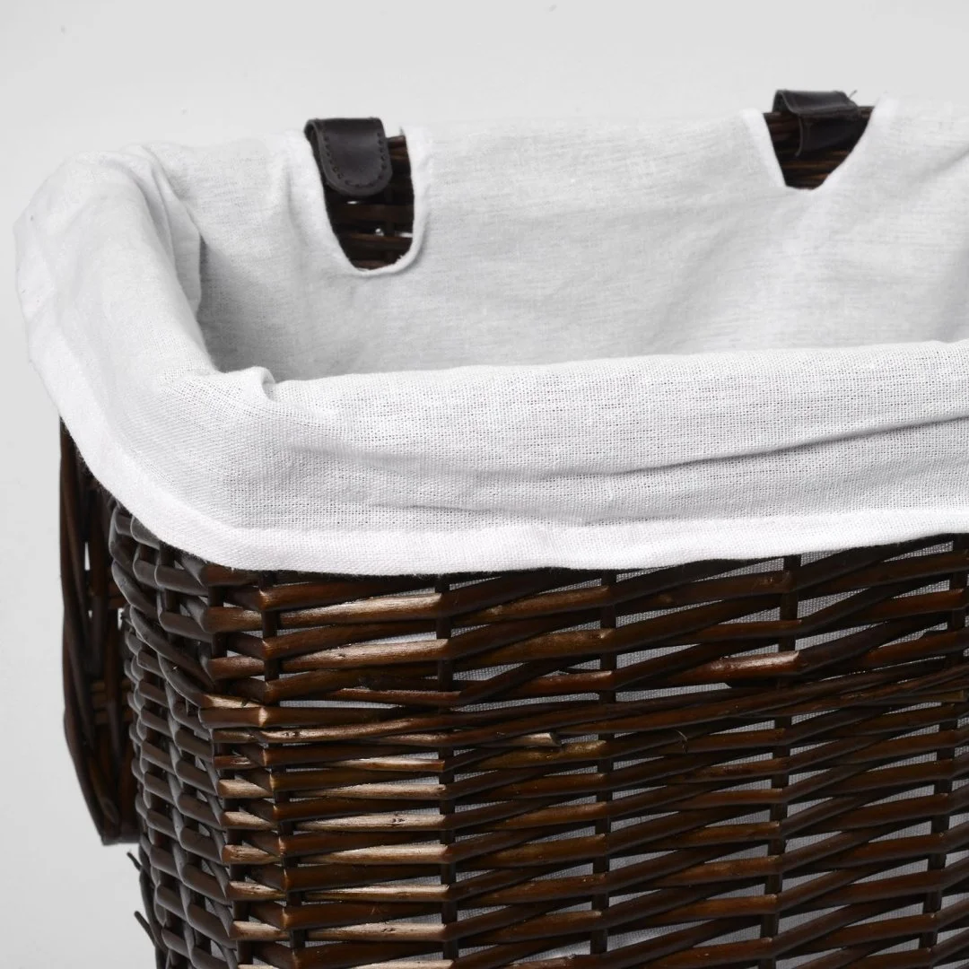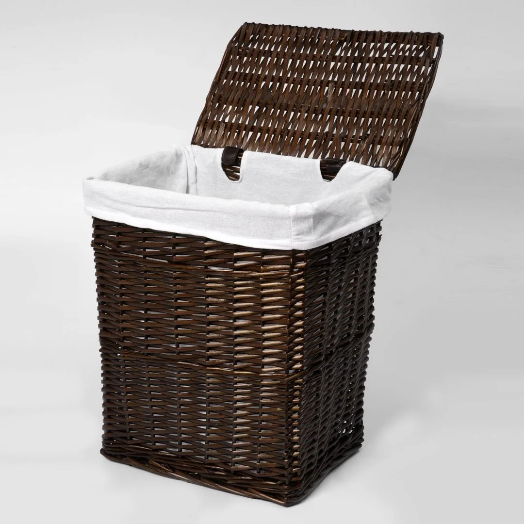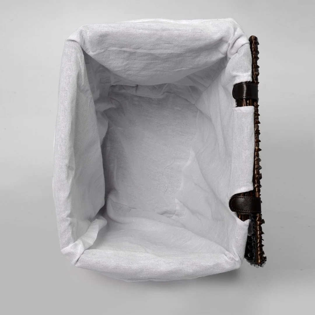 Назначение: Плетеная корзина. Материал: Прутья ивы, текстиль. Покрытие: Водоотталкивающее покрытие. Описание: Размер: 41 х 30 х 48 см* Съемный чехол можно стирать в машинке при температуре не выше 60 градусов.