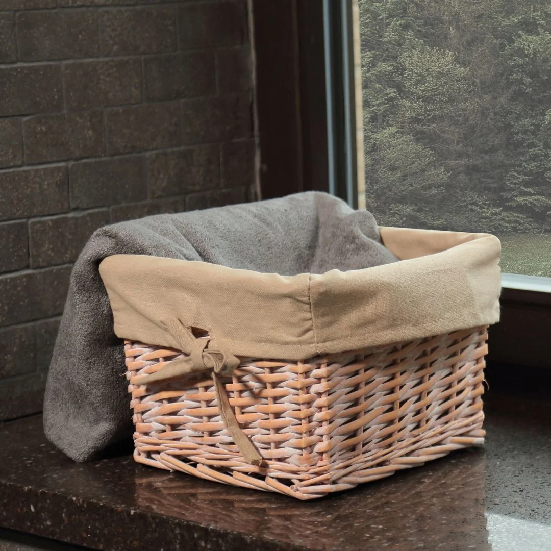 Назначение: Плетеная корзина. Материал: Прутья ивы, текстиль. Покрытие: Водоотталкивающее покрытие. Описание: Размер: 38 х 38 х 24 см* Съемный чехол можно стирать в машинке при температуре не выше 60 градусов.