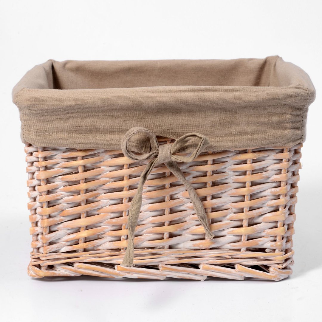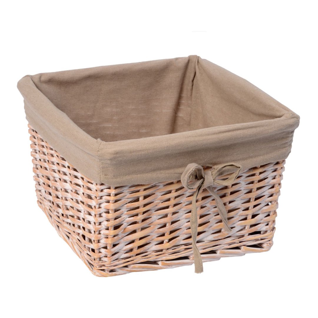 Назначение: Плетеная корзина. Материал: Прутья ивы, текстиль. Покрытие: Водоотталкивающее покрытие. Описание: Размер: 27 х 27 х 18 см* Съемный чехол можно стирать в машинке при температуре не выше 60 градусов.