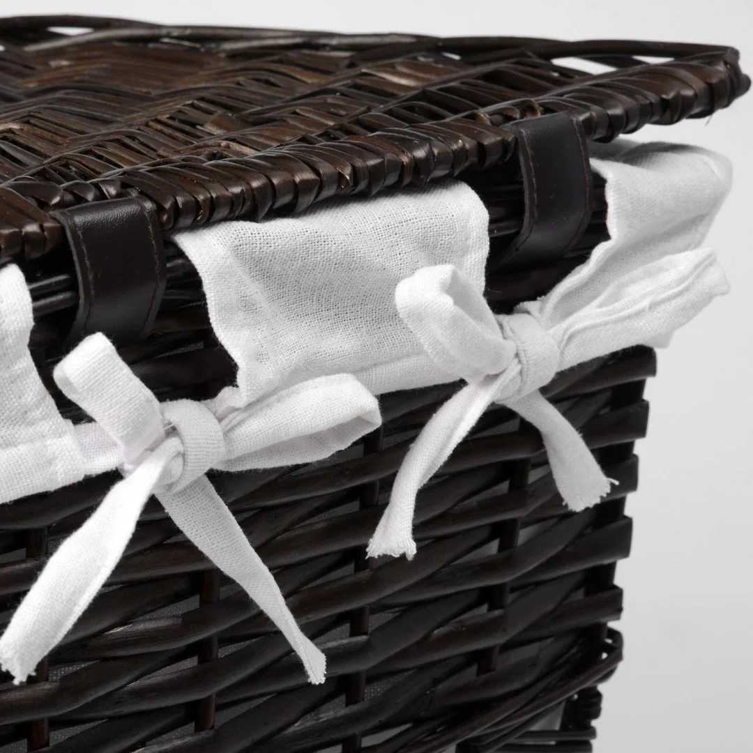 Назначение: Плетеная корзина. Материал: Прутья ивы, текстиль. Покрытие: Водоотталкивающее покрытие. Описание: Размер: 33 х 33 х 51 см* Съемный чехол можно стирать в машинке при температуре не выше 60 градусов.