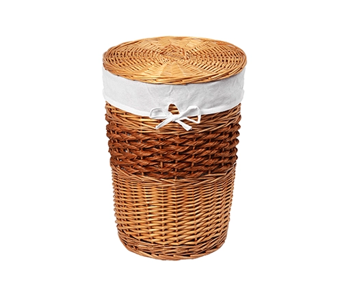 Назначение: Плетеная корзина. Материал: Прутья ивы, текстиль. Покрытие: Водоотталкивающее покрытие. Описание: Размер: 43 х 43 х 58 см* Съемный чехол можно стирать в машинке при температуре не выше 60 градусов.
