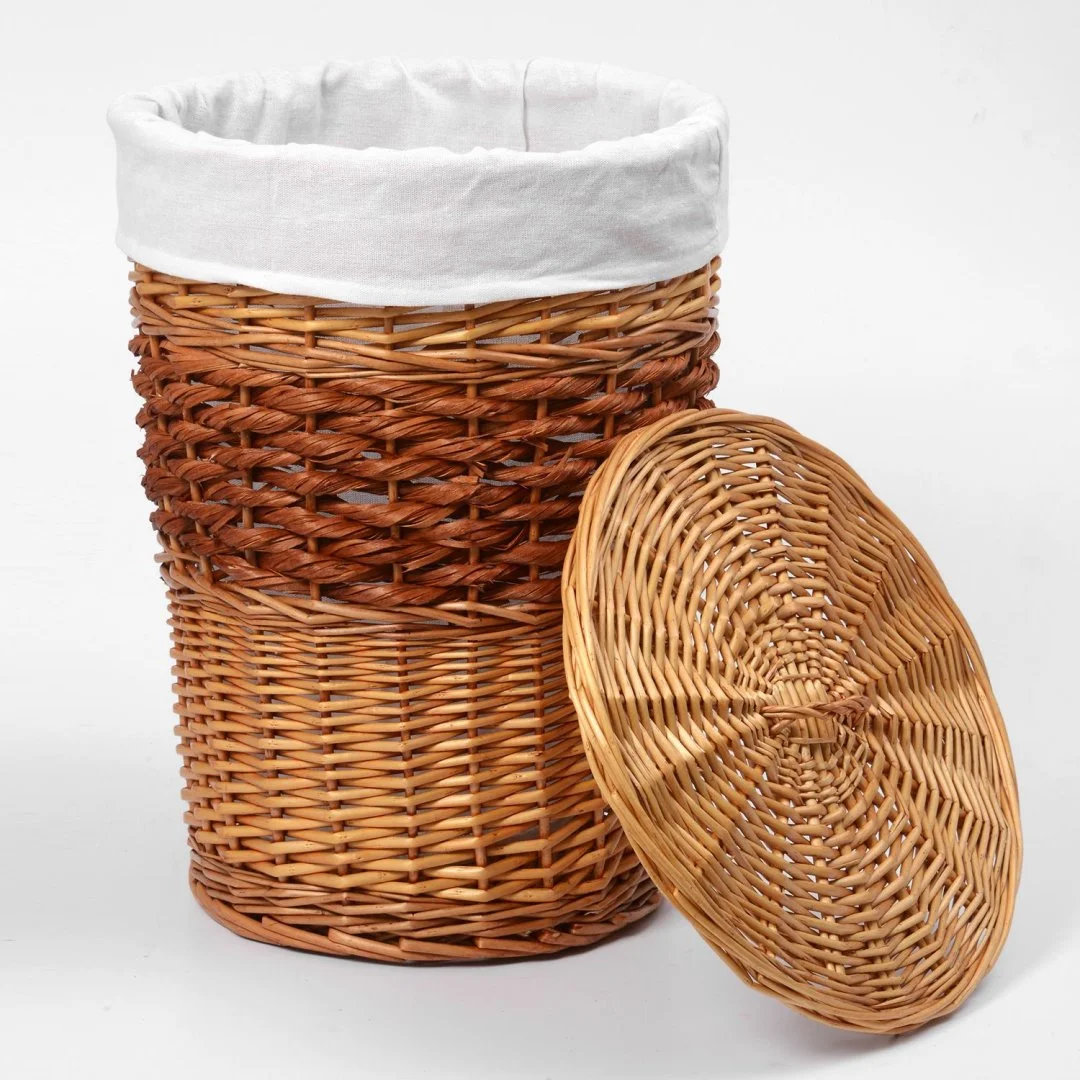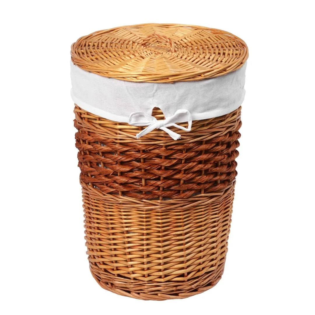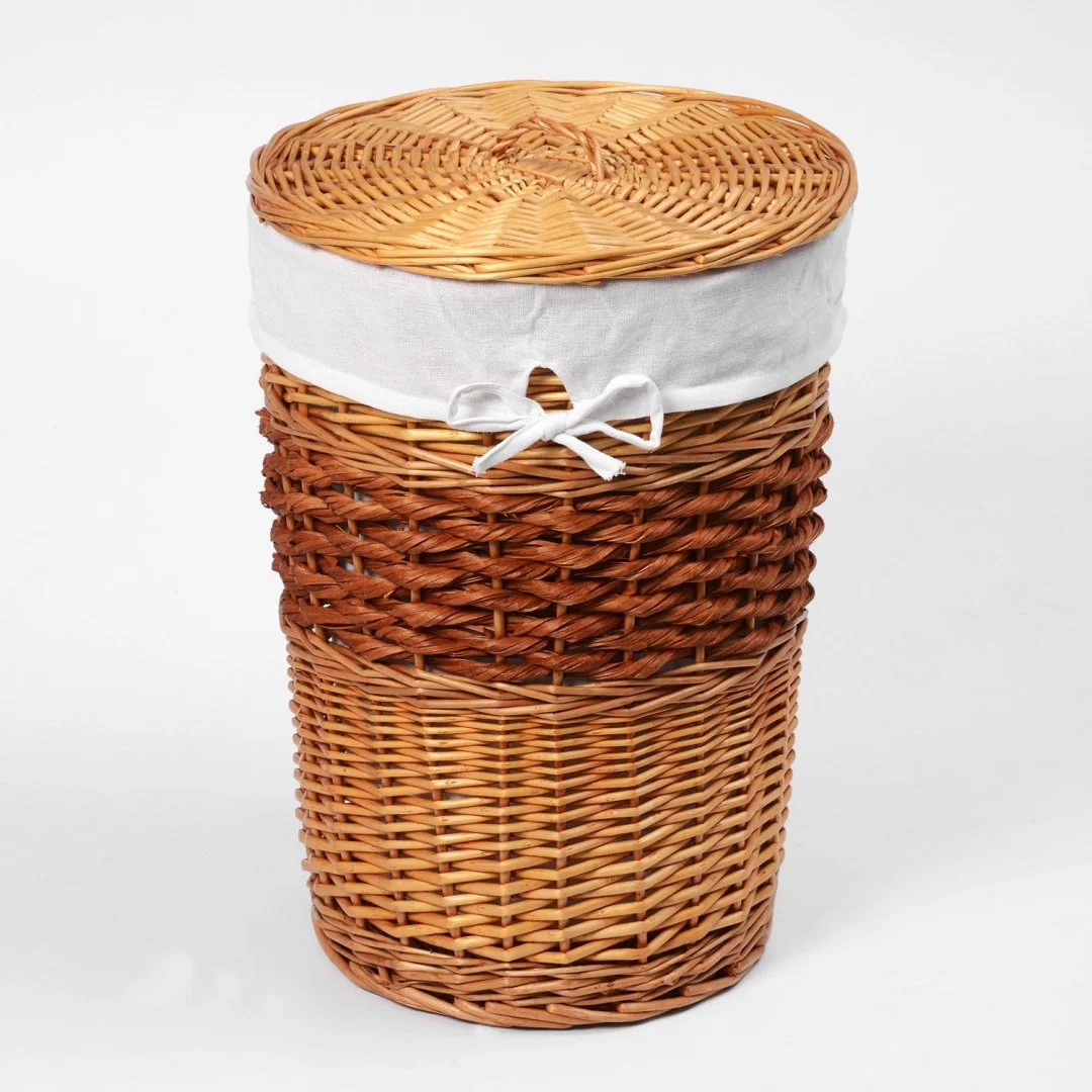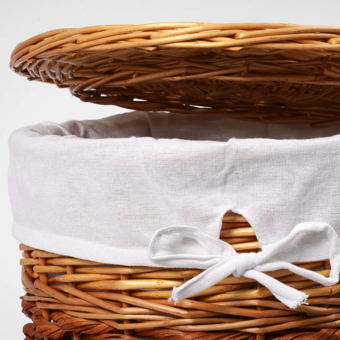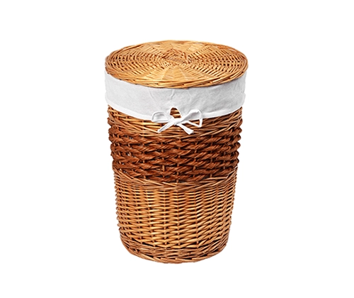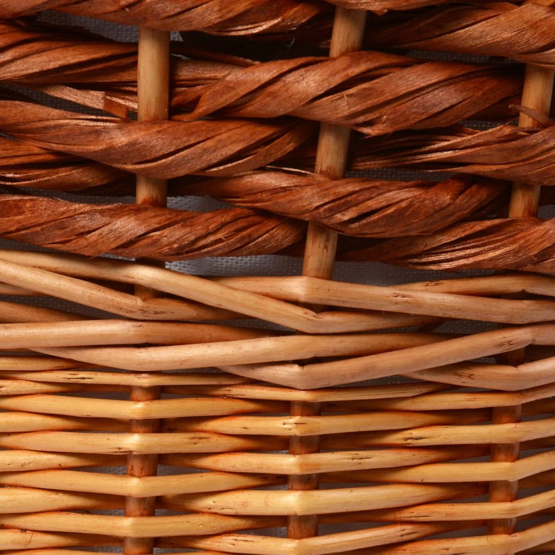 Назначение: Плетеная корзина. Материал: Прутья ивы, текстиль. Покрытие: Водоотталкивающее покрытие. Описание: Размер: 37 х 37 х 48 см* Съемный чехол можно стирать в машинке при температуре не выше 60 градусов.
