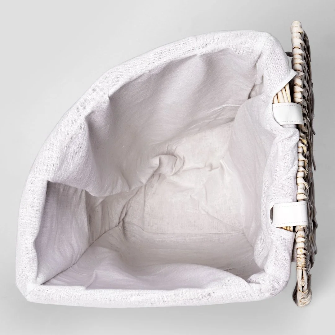 Назначение: Плетеная корзина. Материал: Прутья ивы, текстиль. Покрытие: Водоотталкивающее покрытие. Описание: Размер: 39 х 39 х 56 см* Съемный чехол можно стирать в машинке при температуре не выше 60 градусов.
