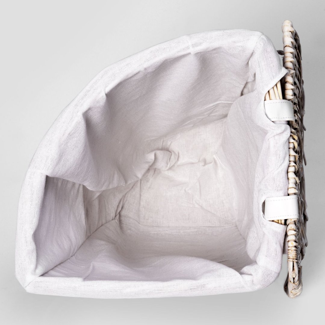 Назначение: Плетеная корзина. Материал: Прутья ивы, текстиль. Покрытие: Водоотталкивающее покрытие. Описание: Размер: 32 х 32 х 45 см* Съемный чехол можно стирать в машинке при температуре не выше 60 градусов.