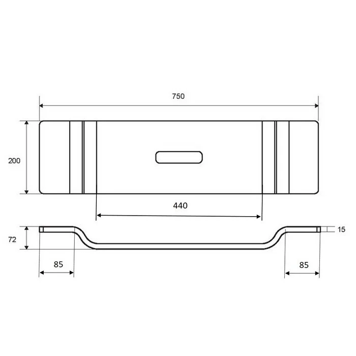 Изогнутая полка-сиденье для ванны шириной 75 см.
