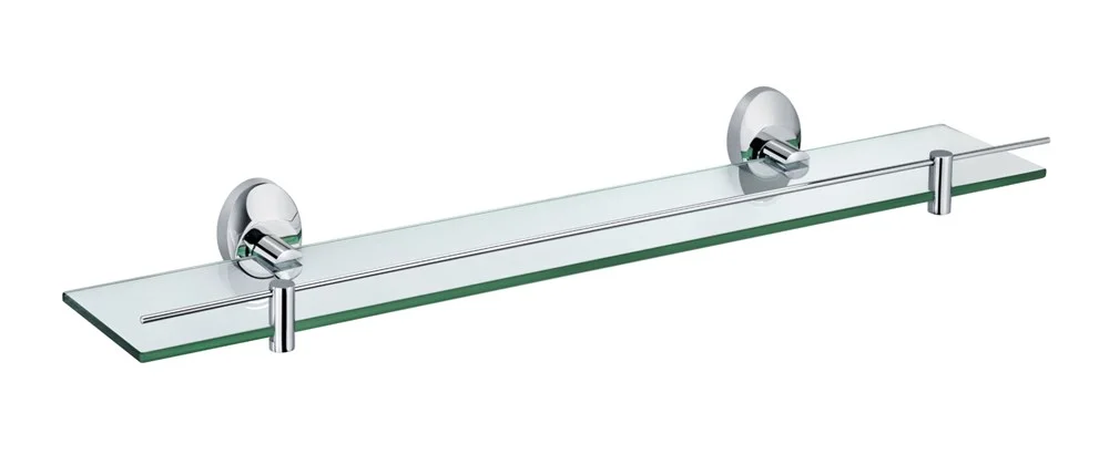 Полочка с ограничителем под зеркало. Материалы - хромированная латунь, стекло.