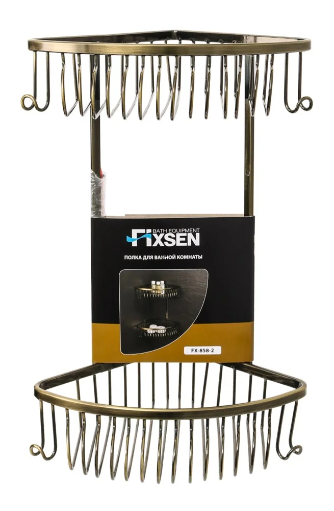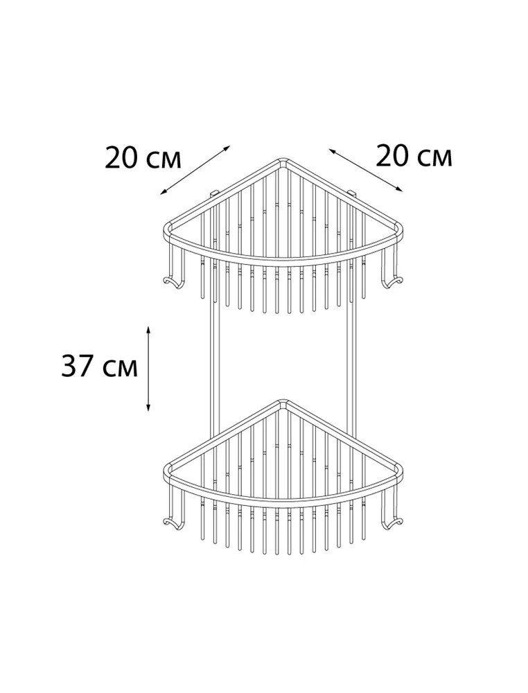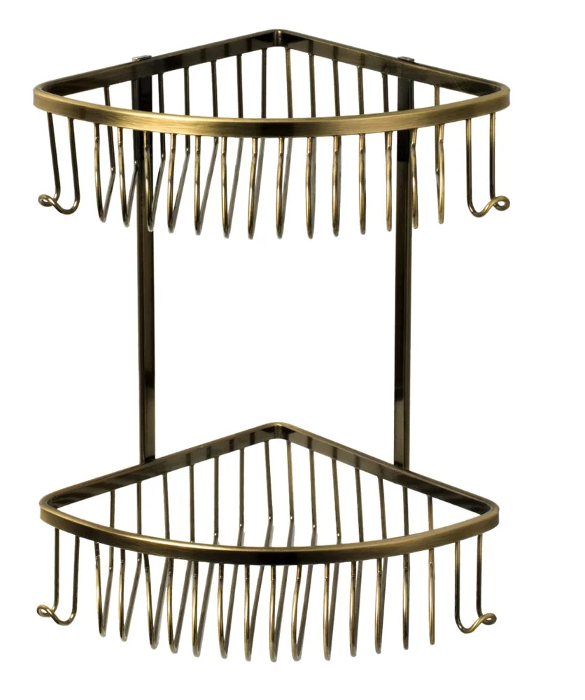 Двухъярусная угловая полочка для банных принадлежностей. Материал - сталь, окрашенная под состаренную бронзу.
