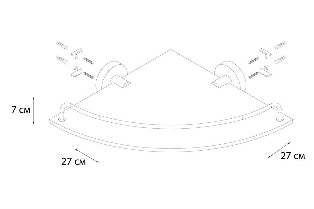 Полка стеклянная, угловая, подвесная, с круглым основанием, в стиле модерн, подойдет и к любому современному интерьеру ванной комнаты.