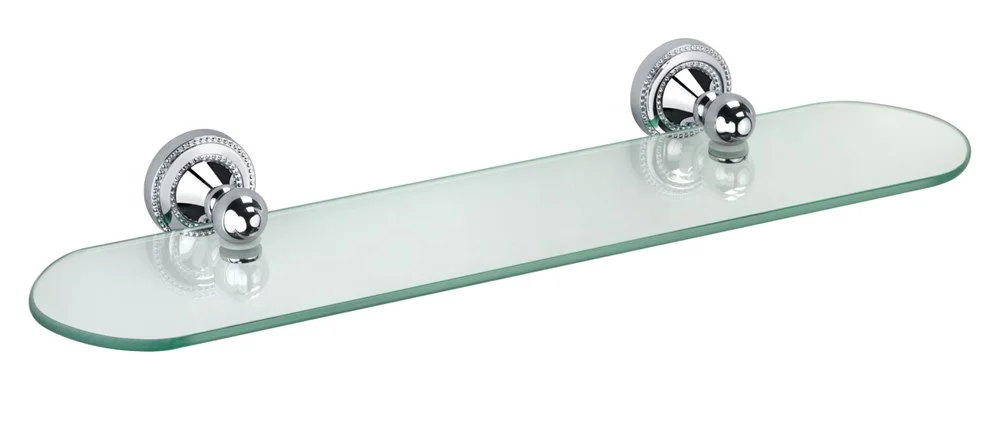 Стеклянная полочка для ванной комнаты с креплениями из хромированной латуни.