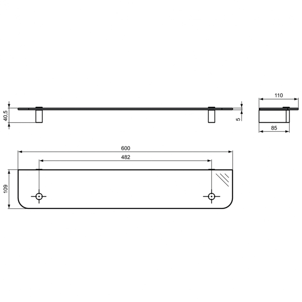 Полка Ideal Standard N1394AA CONNECT N1394AA 600x110x40 мм стеклянная