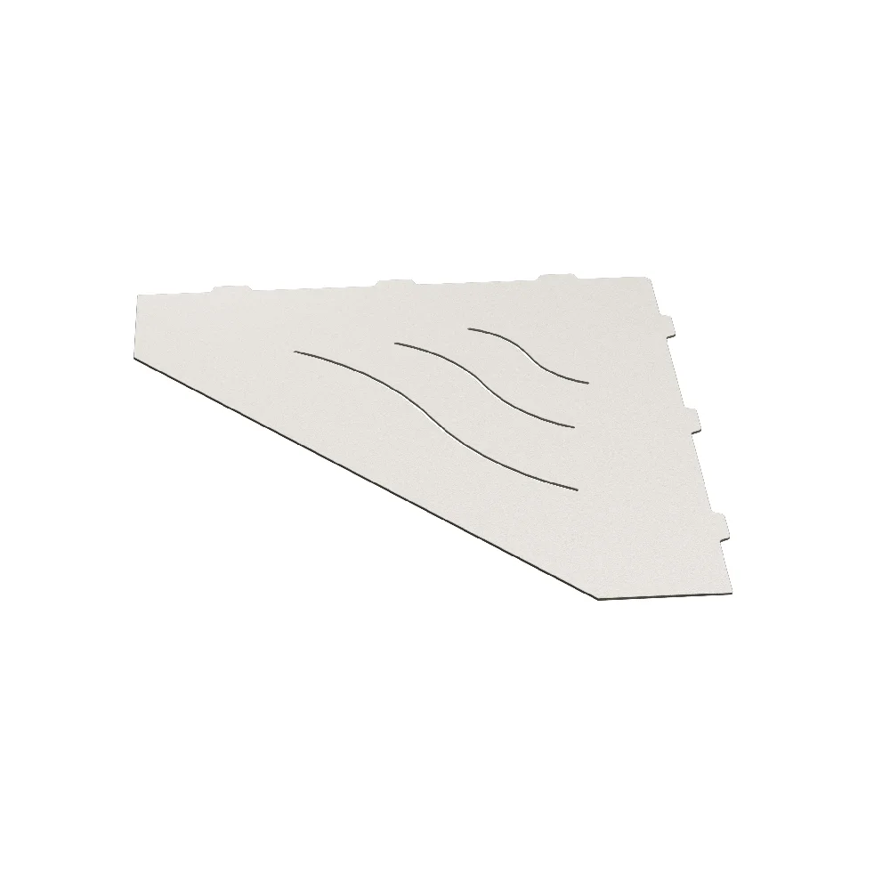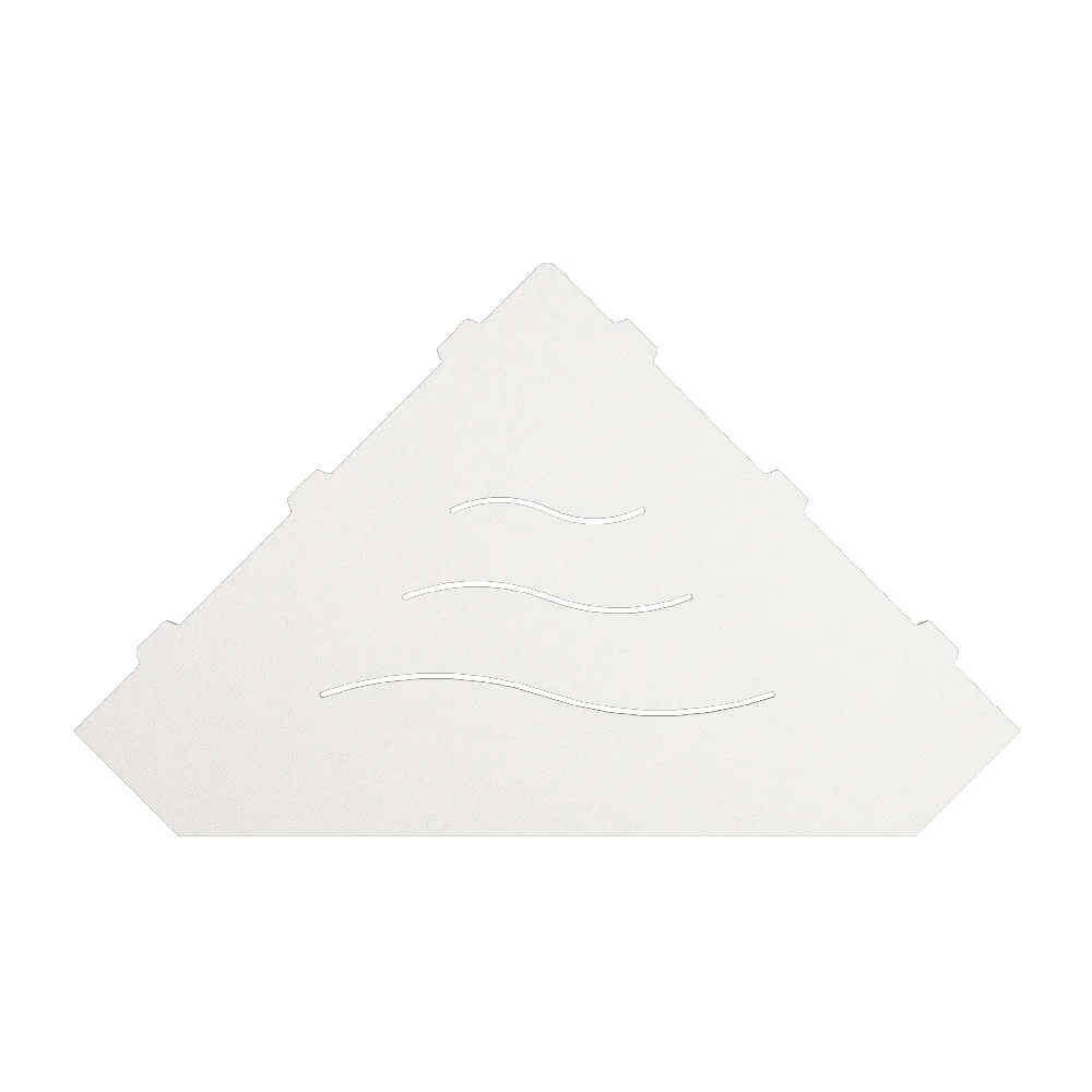 Полки для душевой зоны, разработанные специально для монтажа после завершения ремонта, т. е. укладки плитки. Легко устанавливаются в любые угловые зоны в помещении, для этого прорезается шов между плитками, далее полочка вклеивается между плиткой на любой бытовой герметик.