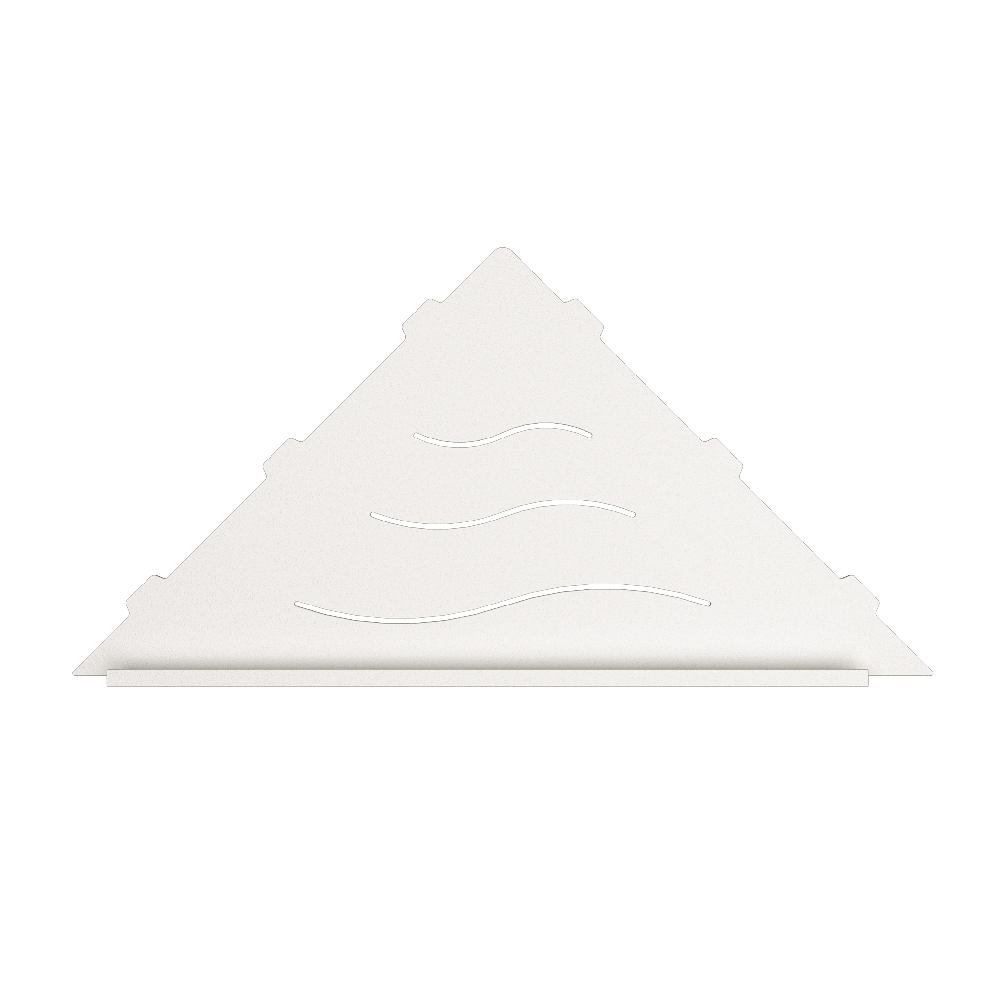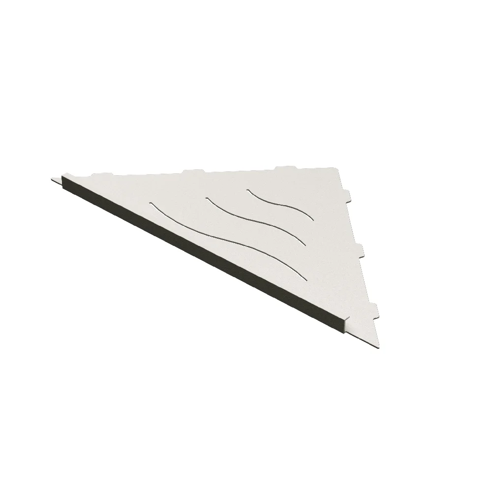 Полки для душевой зоны, разработанные специально для монтажа после завершения ремонта, т. е. укладки плитки. Легко устанавливаются в любые угловые зоны в помещении, для этого прорезается шов между плитками, далее полочка вклеивается между плиткой на любой бытовой герметик.