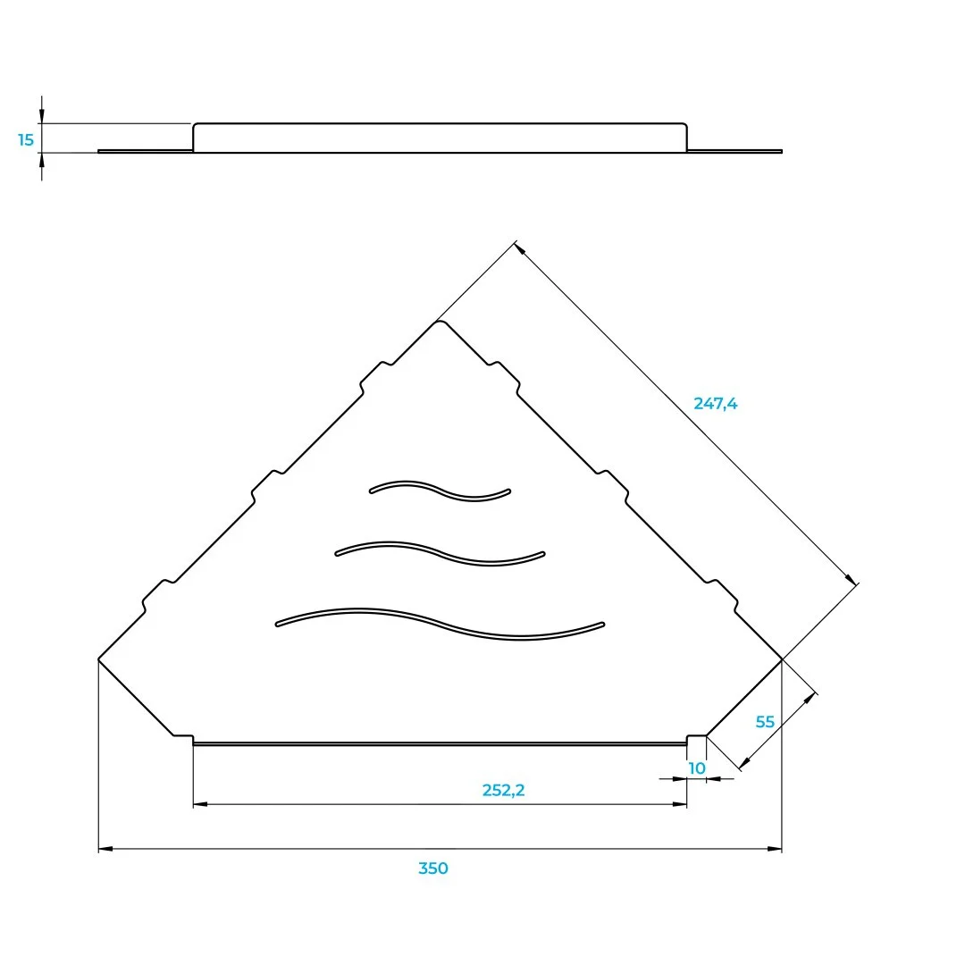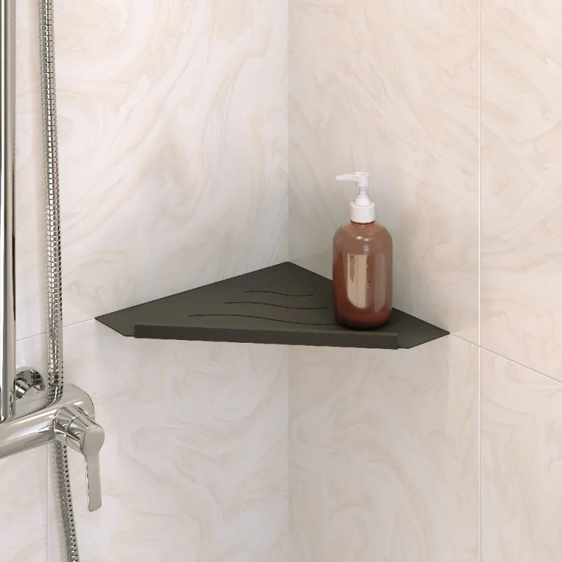 Полки для душевой зоны, разработанные специально для монтажа после завершения ремонта, т. е. укладки плитки. Легко устанавливаются в любые угловые зоны в помещении, для этого прорезается шов между плитками, далее полочка вклеивается между плиткой на любой бытовой герметик.