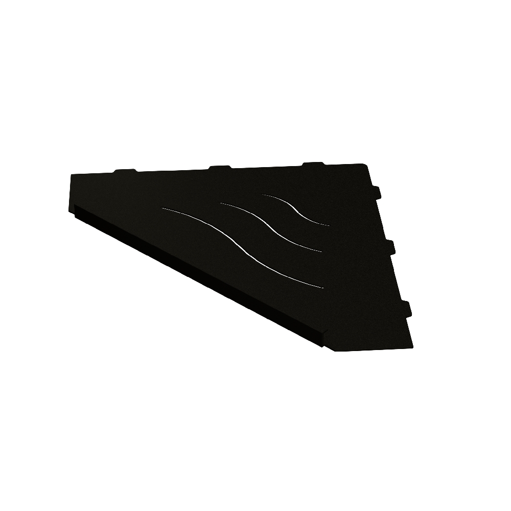 Полки для душевой зоны, разработанные специально для монтажа после завершения ремонта, т. е. укладки плитки. Легко устанавливаются в любые угловые зоны в помещении, для этого прорезается шов между плитками, далее полочка вклеивается между плиткой на любой бытовой герметик.