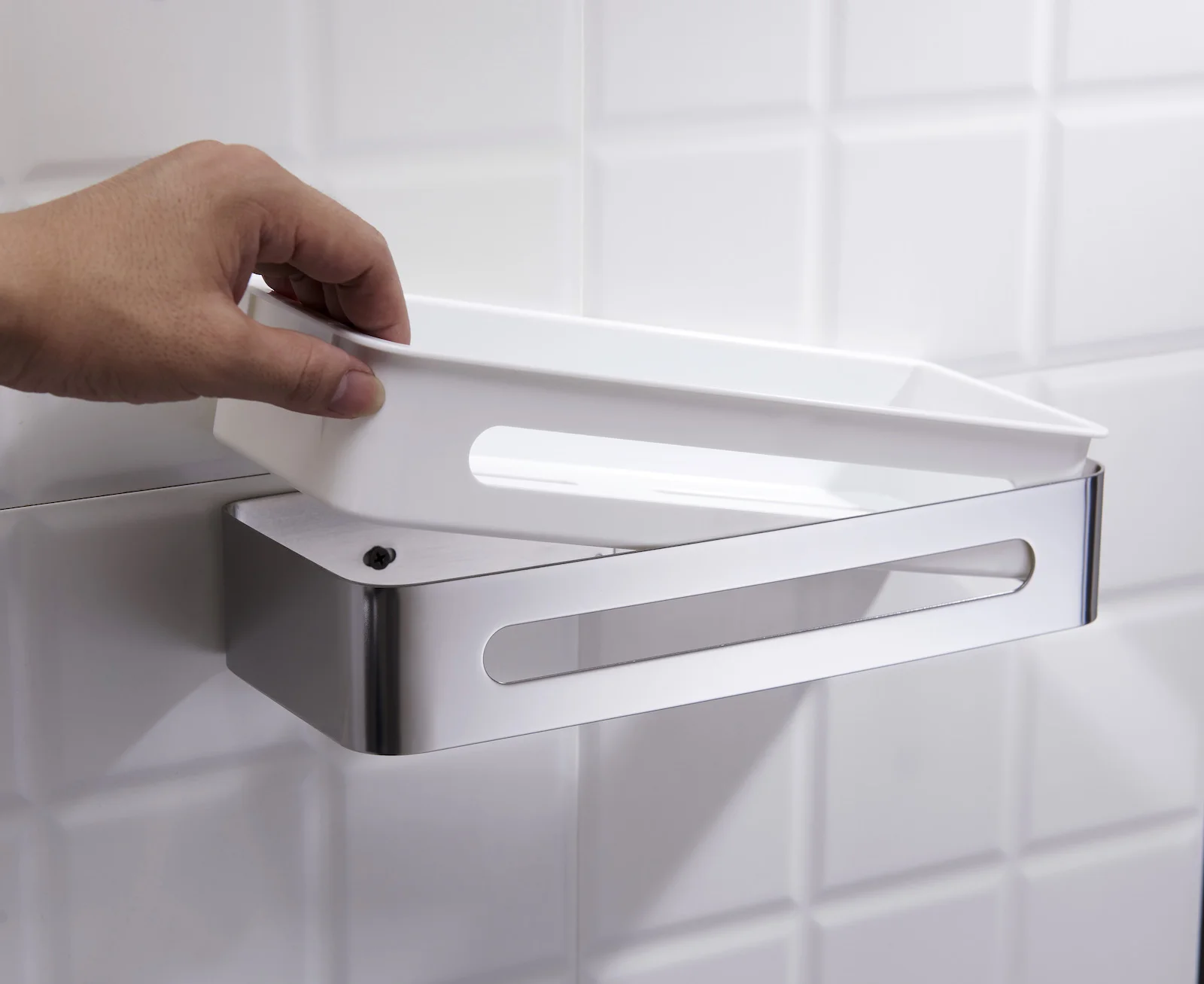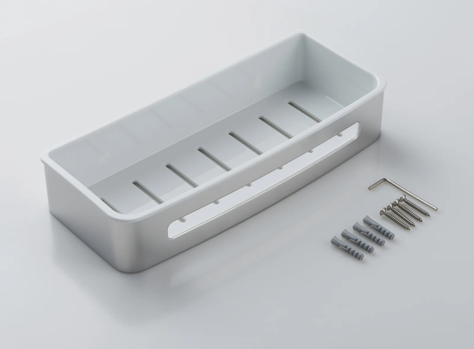 Держатель полки из нержавеющей стали - 1 шт., Полка пластиковая (белая) - 1 шт., Набор креплений - 1 шт., Инструкция - 1 шт.
