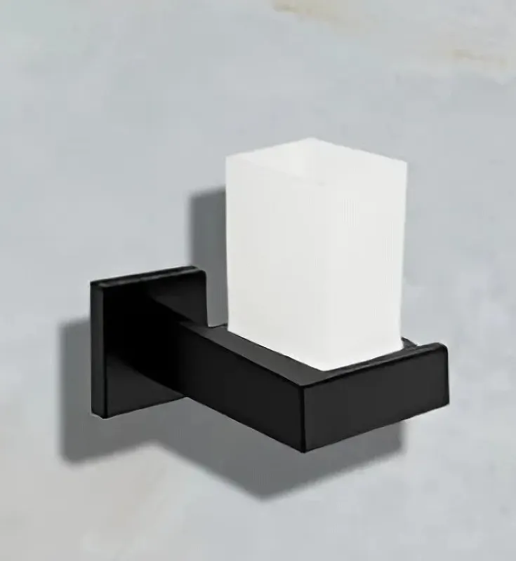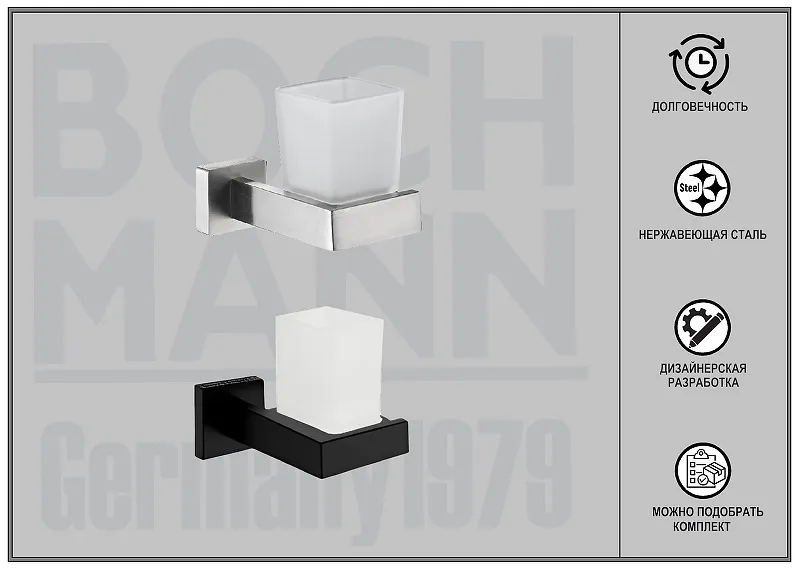 Полотенцедержатель BOCH MANN BM10649 CR-F25-H06MB из нержавеющей стали со стаканом для зубных щеток, черный