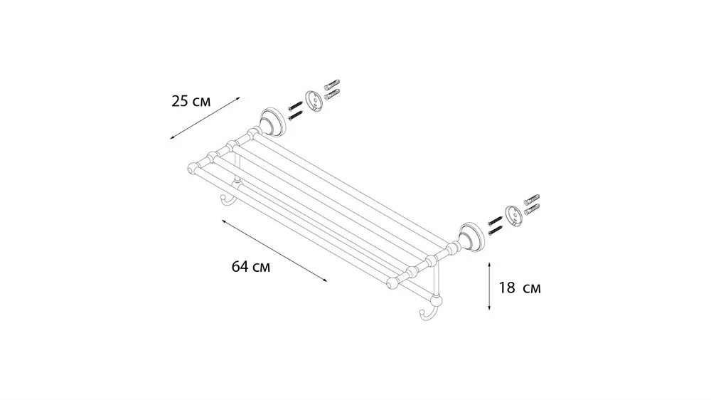 Полка для полотенец с крючками и полотенцедержатель. Материал - латунь.