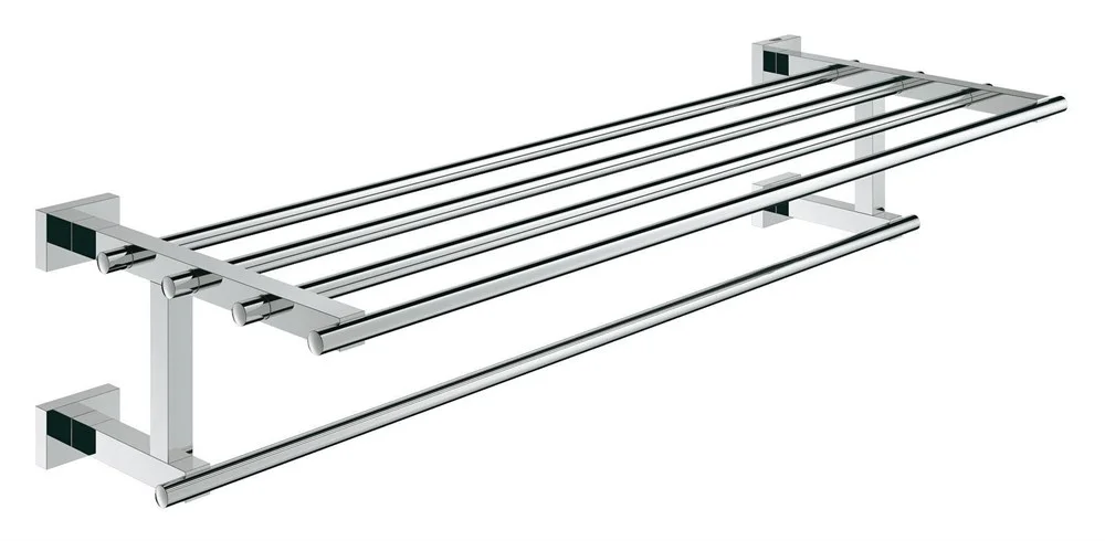 GROHE Essentials Cube полочка для полотенец дает Вам много возможностей для организации пространства, повесить ли полотенца на перекладину или аккуратно сложить на полочке. Полочка также хорошо послужит для размещения различных банных принадлежностей, которые вы захотите держать под рукой. Сделанная в дизайне неподвластном времени, она будет функционально незаменима и привлекательно в одно и тоже время. А блестящее хромовое покрытие сделает ее более привлекательной для интерьера.