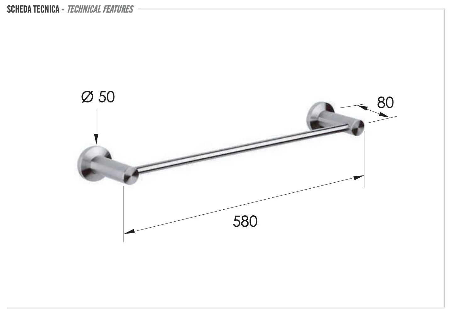 Полотенцедержатель Remer Minimal INOX Mi30INOXCR, нержавеющая сталь 60 см