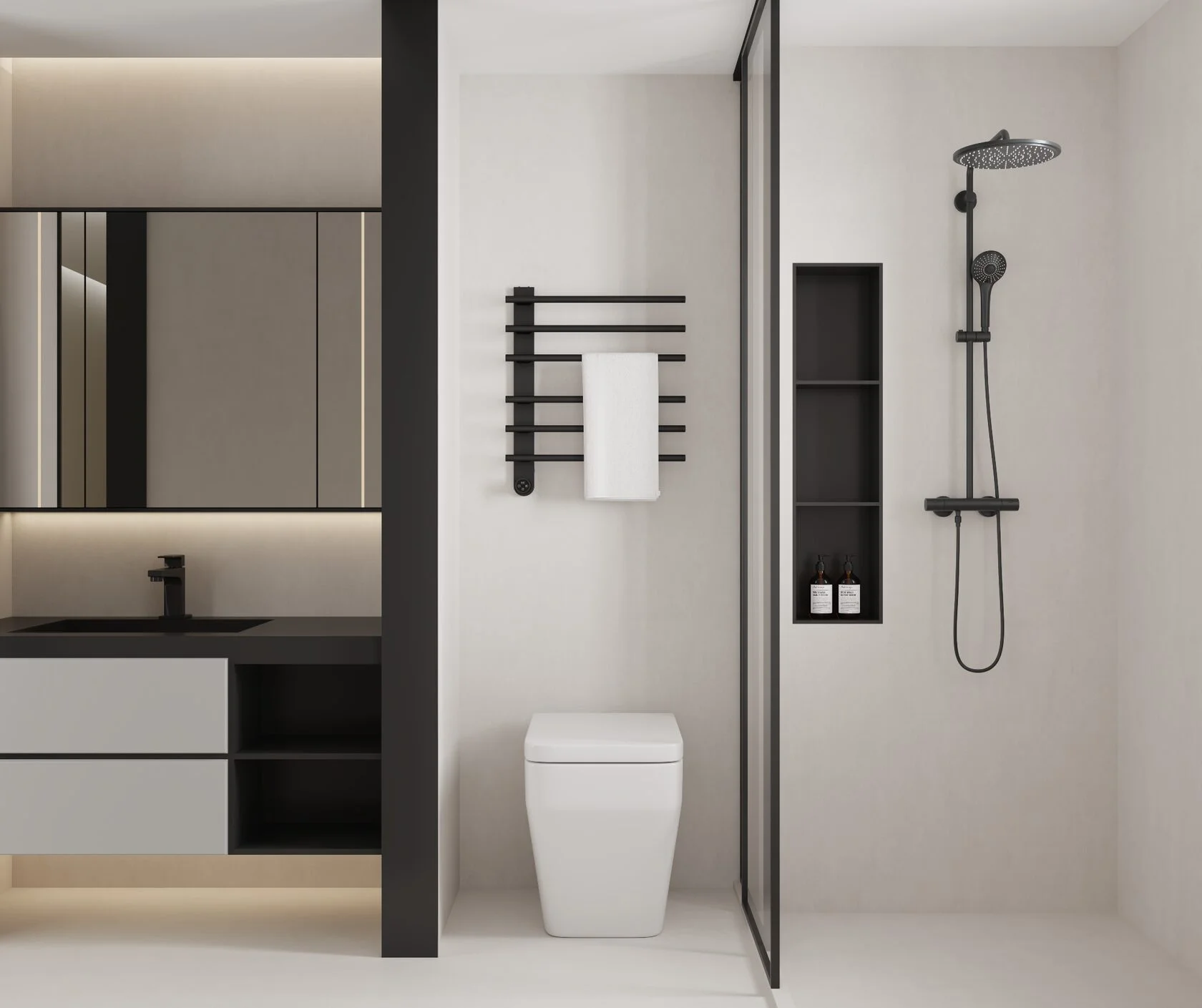 Полотенцесушитель электрический AQUAme AQM3116MB 520x624 c терморегуляторм, черный матовый